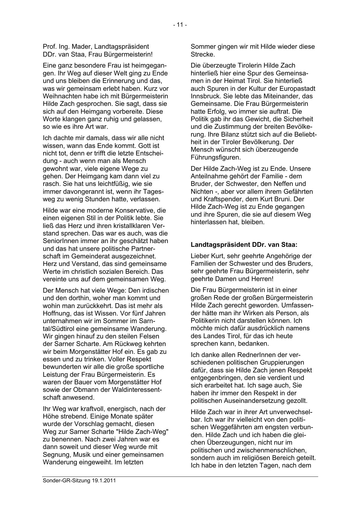 Hilde Zach war in ihrer Art unverwechselbar. Ich war ihr vielleicht von den politischen Weggefährten am engsten verbunden. Hilde Zach und ich haben die gleichen Überzeugungen, nicht nur im