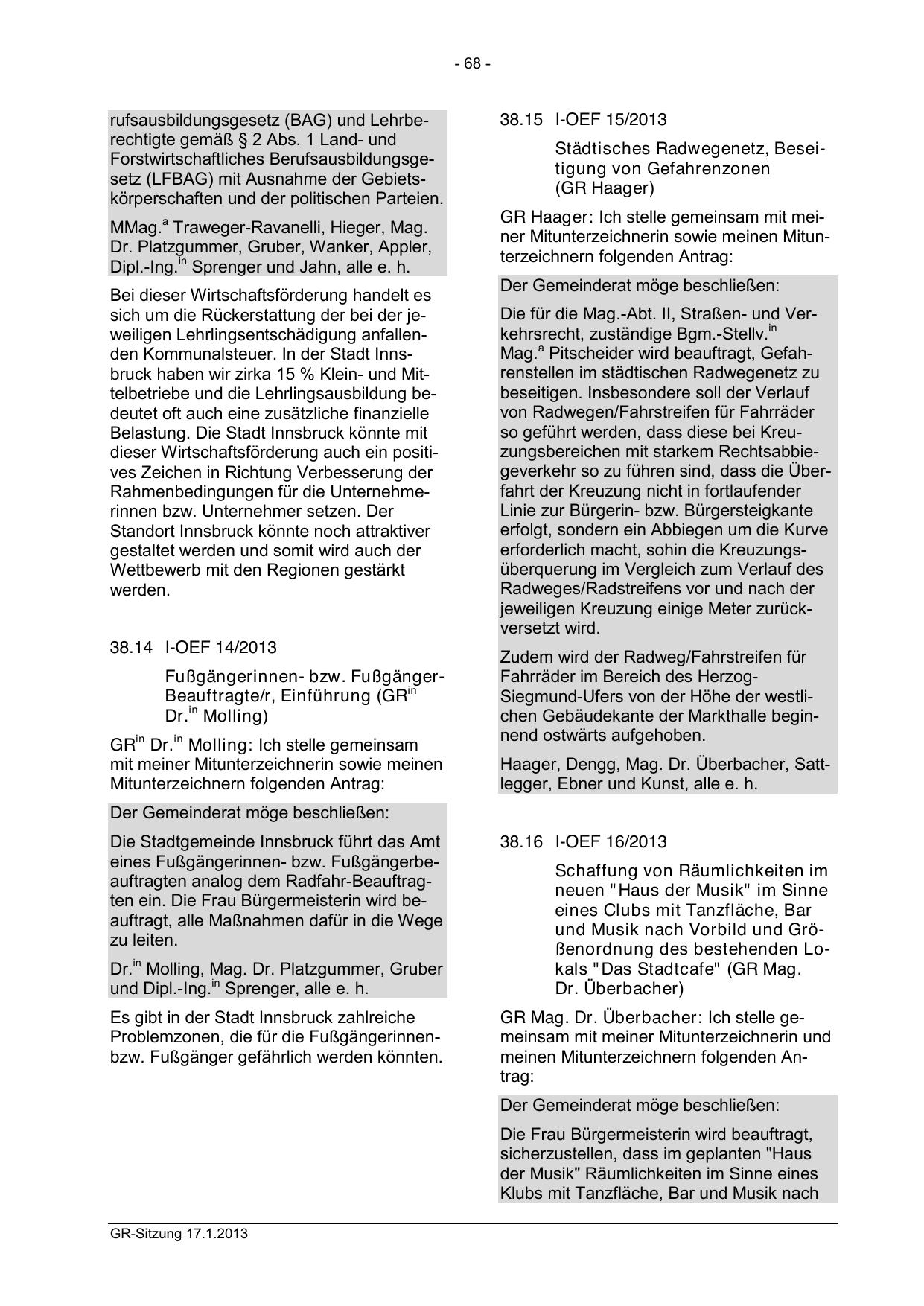 GR Haager: Ich stelle gemeinsam mit meiner Mitunterzeichnerin sowie meinen Mitunterzeichnern folgenden Antrag: