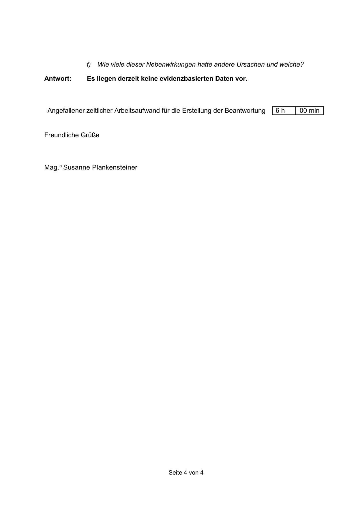 Angefallener zeitlicher Arbeitsaufwand für die Erstellung der Beantwortung