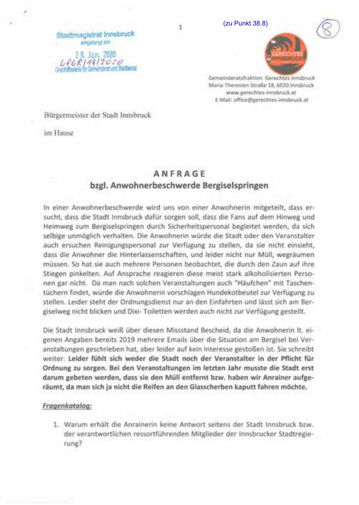 bzgl. Anwohnerbeschwerde Bergiselspringen