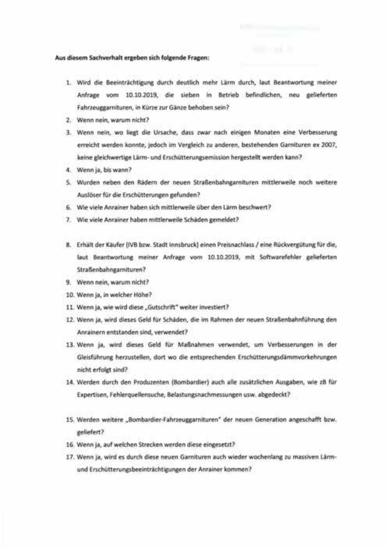 17. Wenn ja, wird es durch diese neuen Garnituren auch wieder wochenlang zu massiven Lärmund Erschütterungsbeeinträcht igungen der Anrainer kommen?