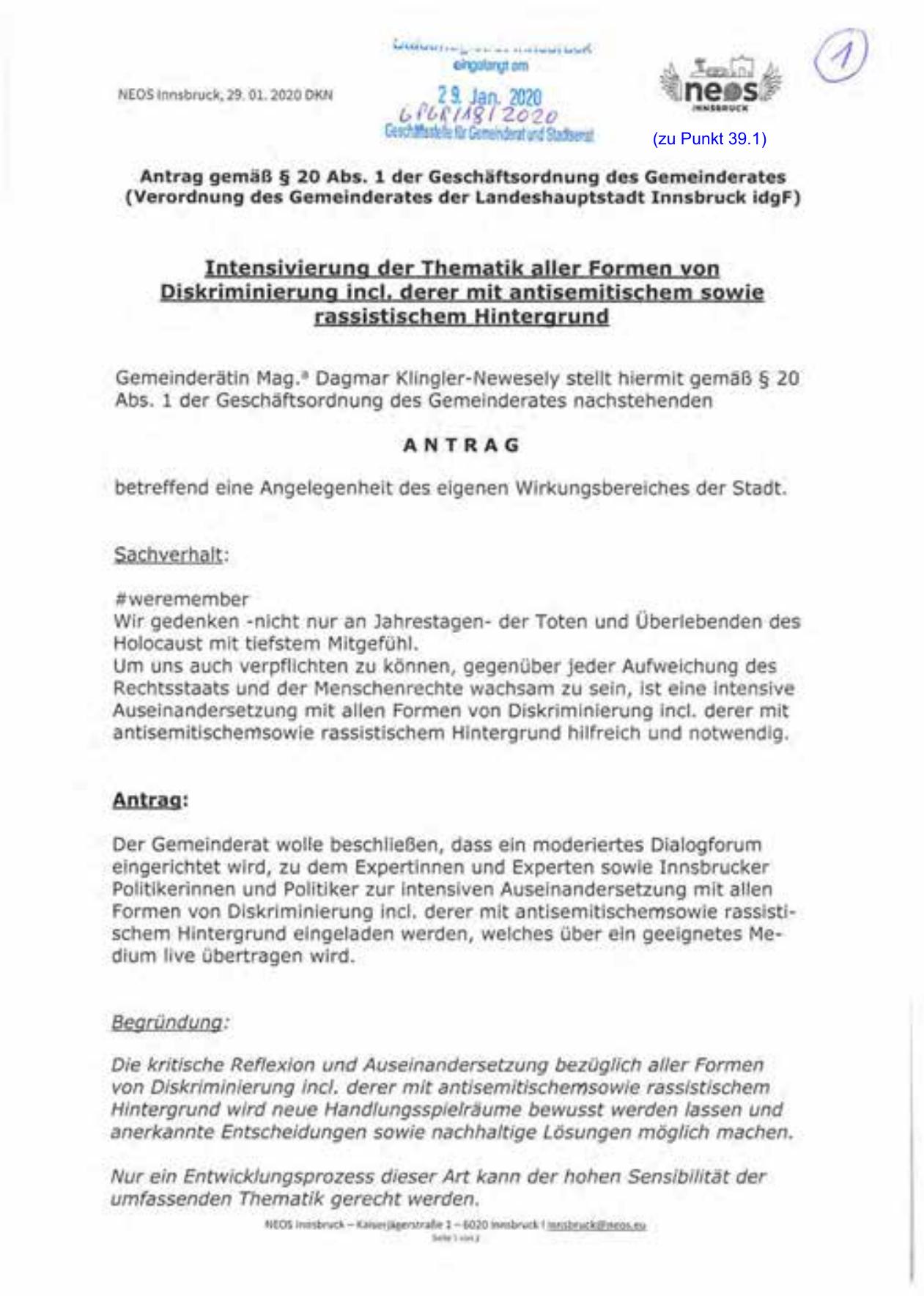 NEOS Innsbruck, 29. 01.2020 DKN