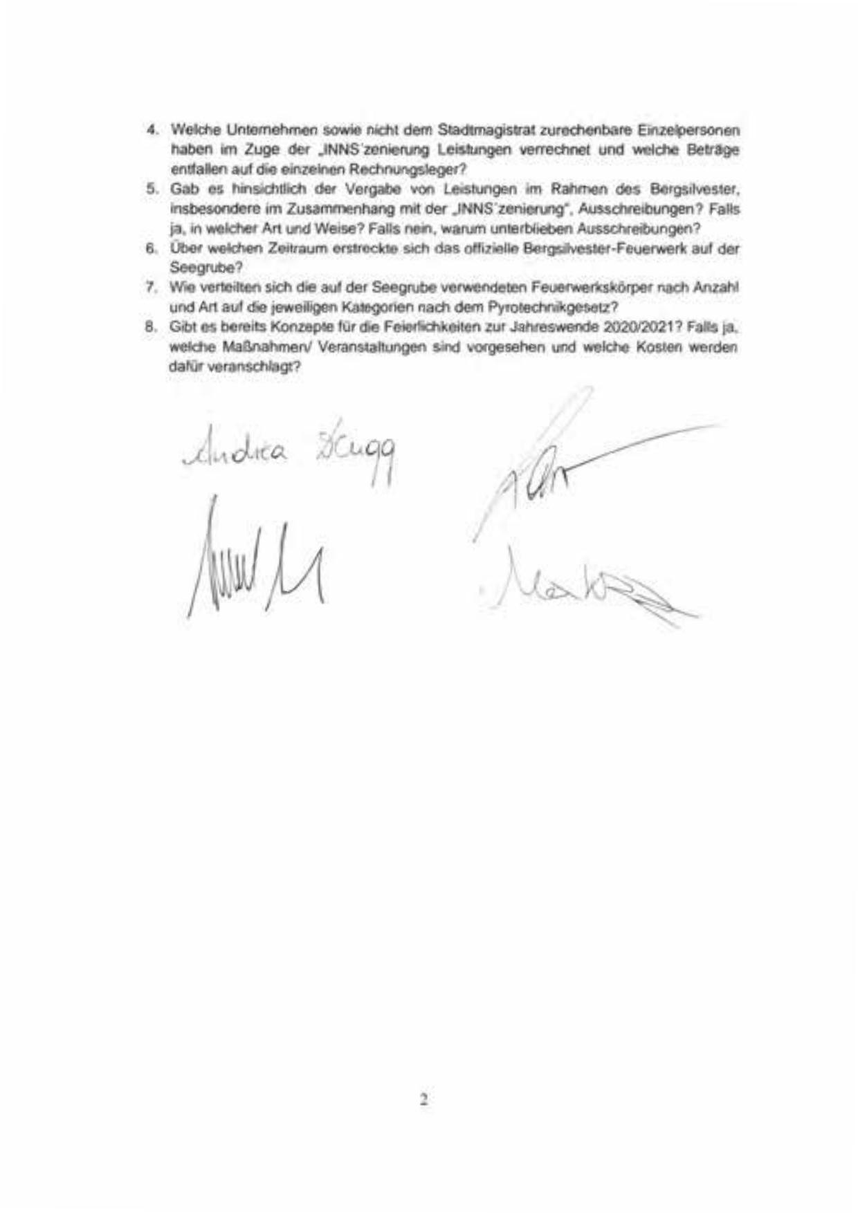 5. Gab es hinsichtlich der Vergabe von Leistungen im Rahmen des Bergsilvester,