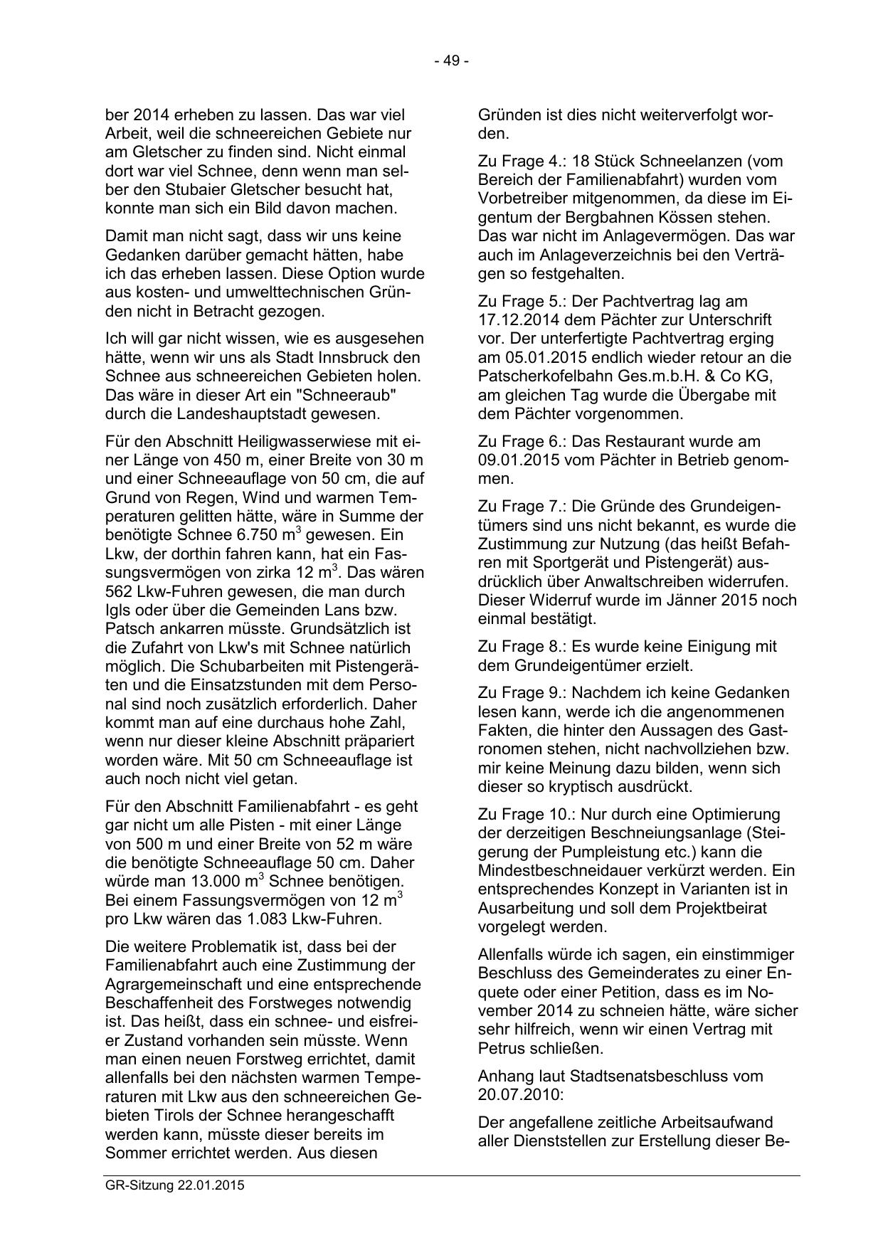 der derzeitigen Beschneiungsanlage (Steigerung der Pumpleistung etc.) kann die