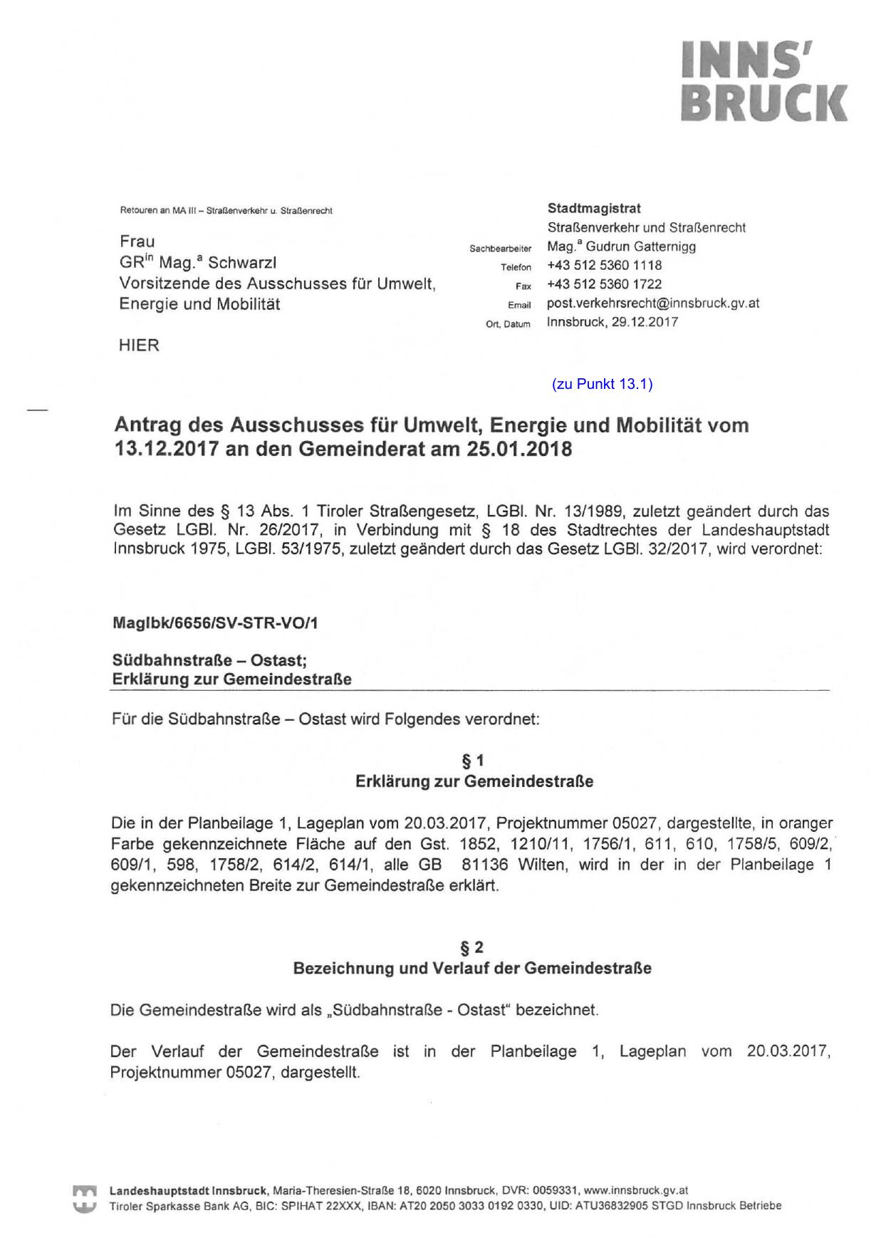 13.12.2017 an den Gemeinderat am 25.01.2018