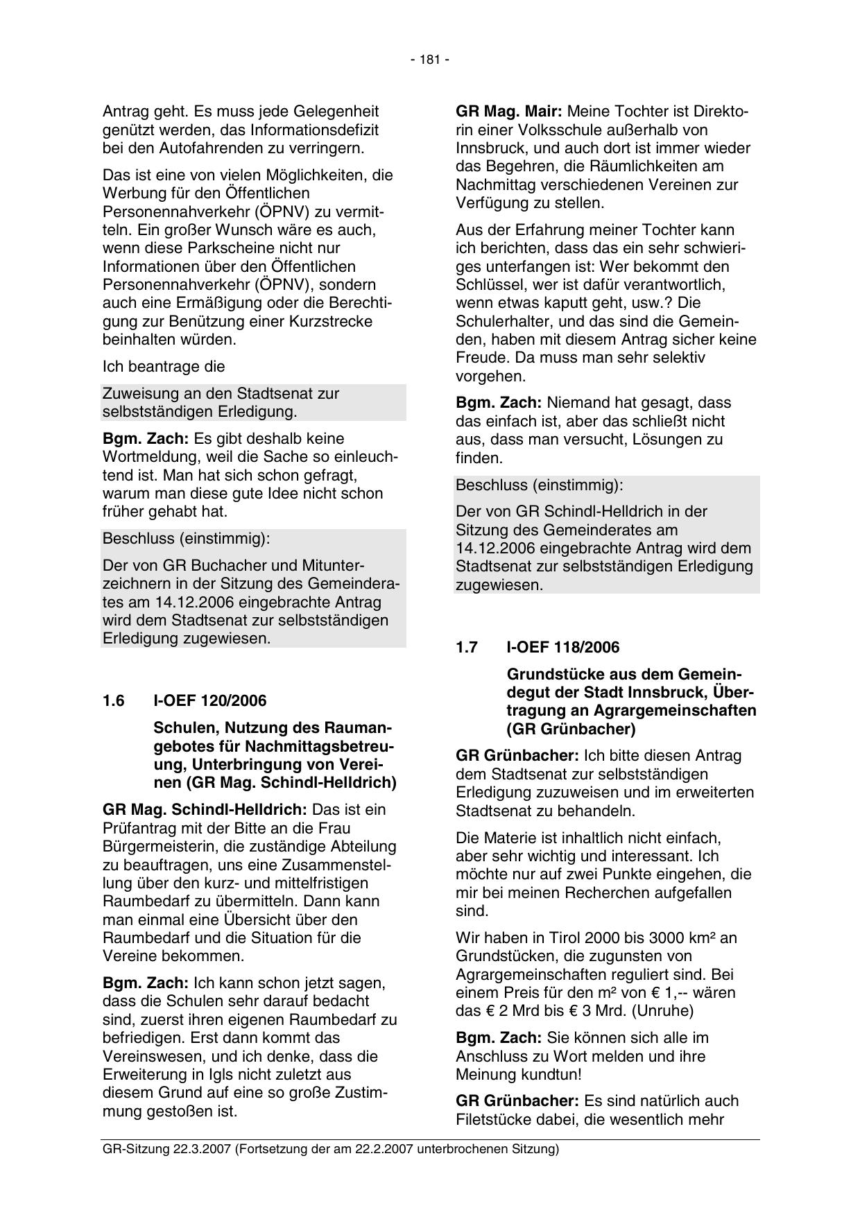 GR-Sitzung 22.3.2007 (Fortsetzung der am 22.2.2007 unterbrochenen Sitzung)