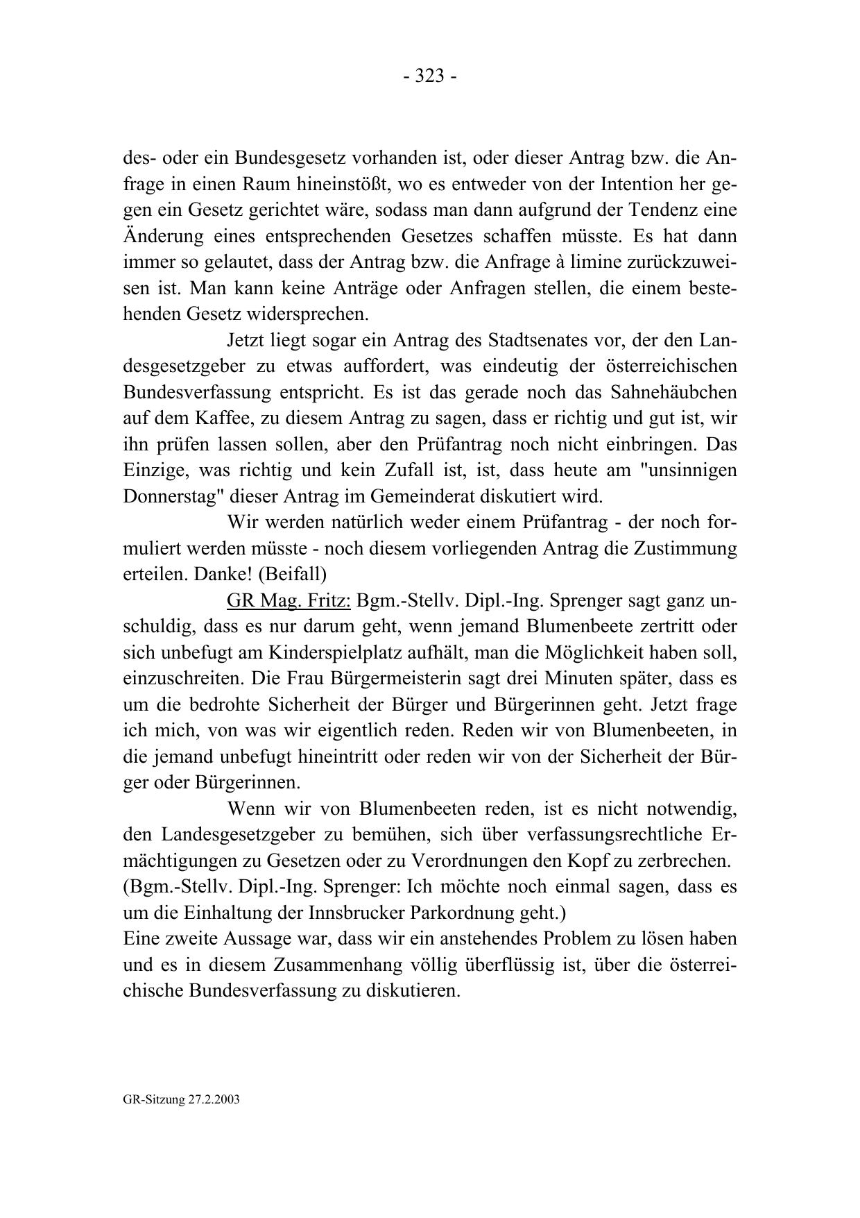 GR-Sitzung 27.2.2003