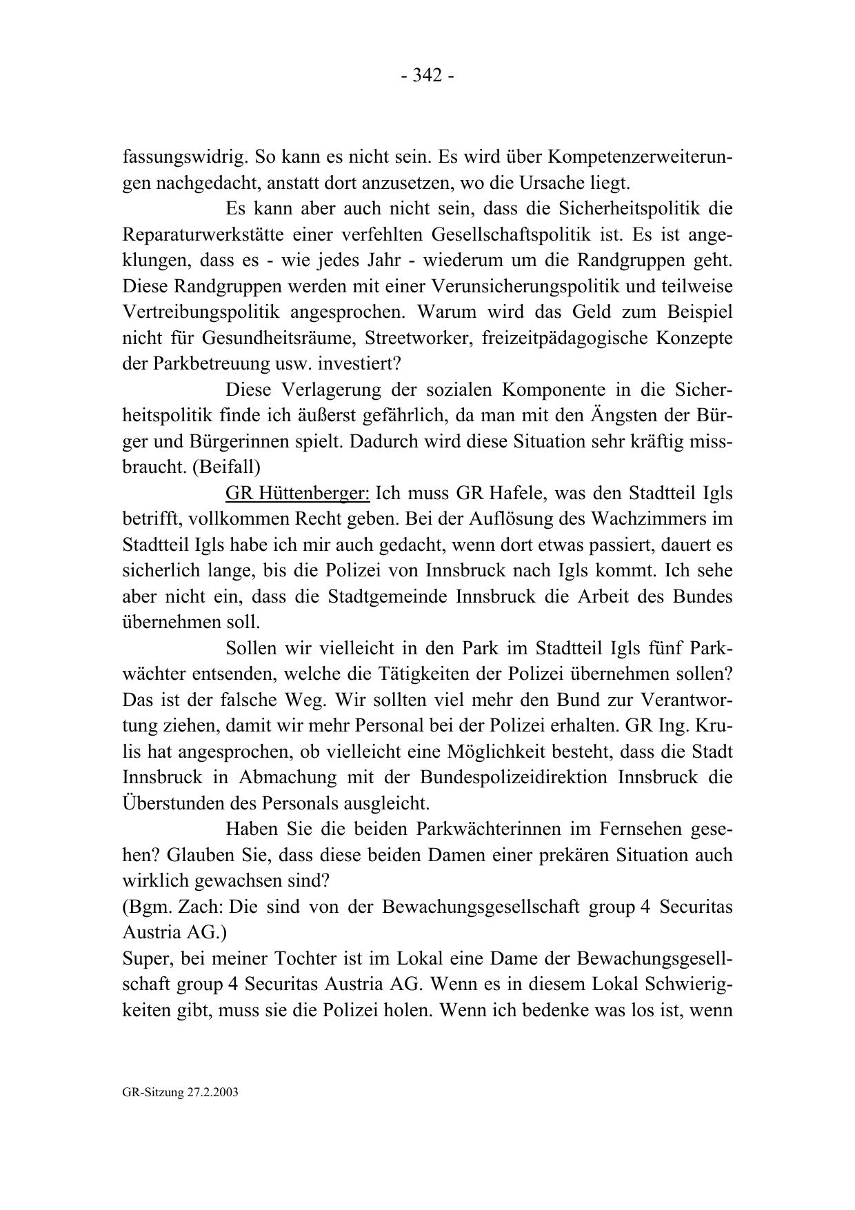 GR-Sitzung 27.2.2003