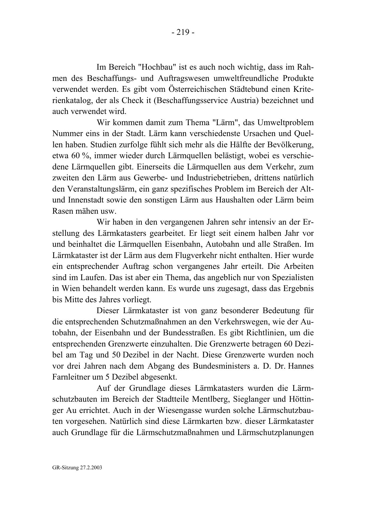 GR-Sitzung 27.2.2003