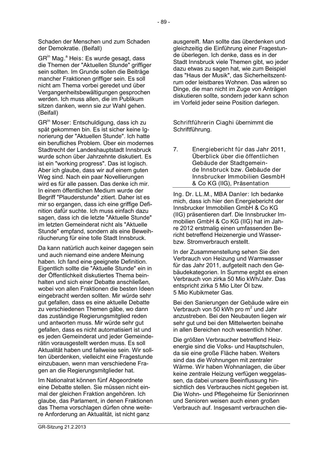 Stunde" empfand, sondern als eine Beweihräucherung für eine tolle Stadt Innsbruck.