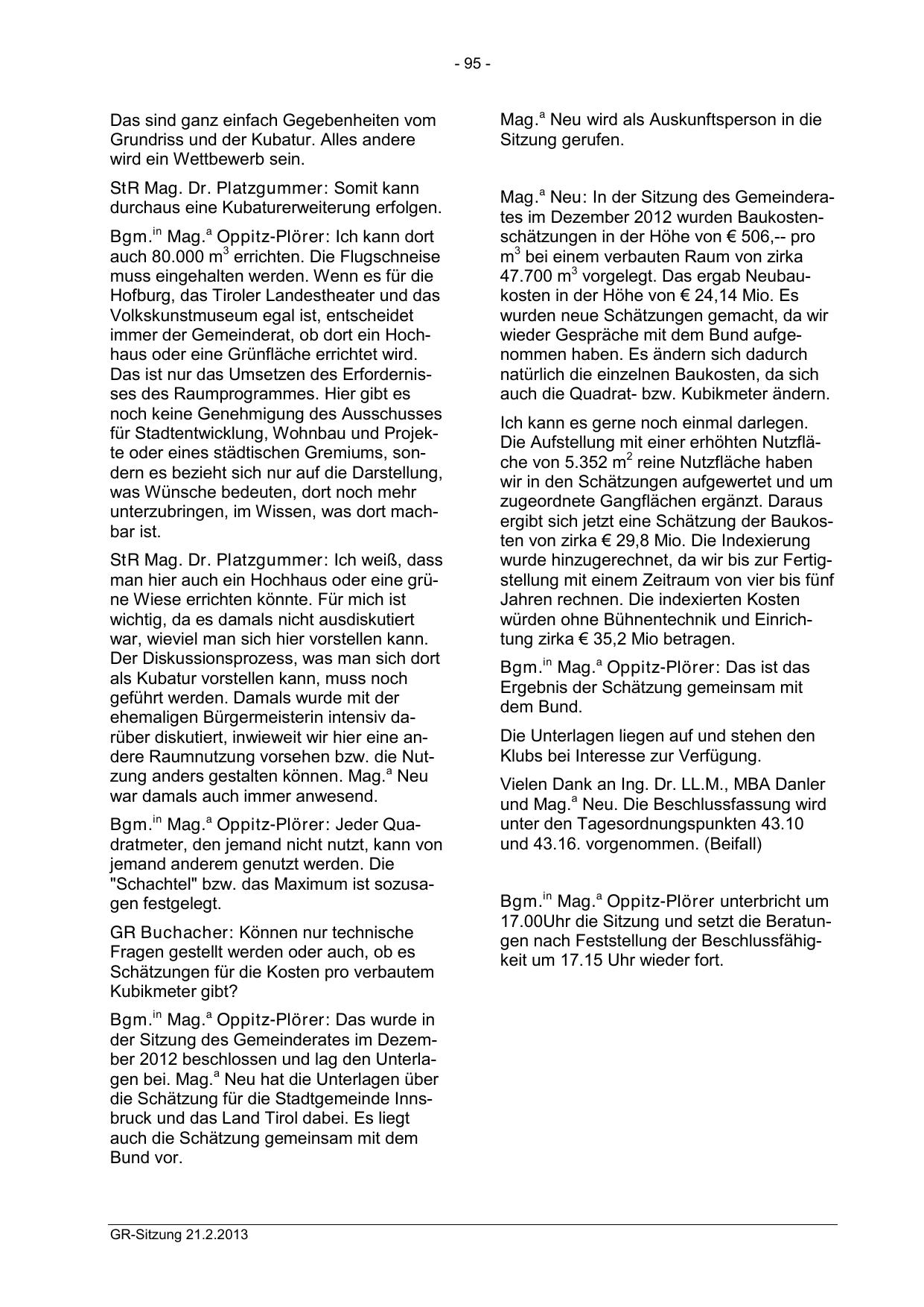 Mag.a Neu: In der Sitzung des Gemeinderates im Dezember 2012 wurden Baukostenschätzungen in der Höhe von € 506,-- pro