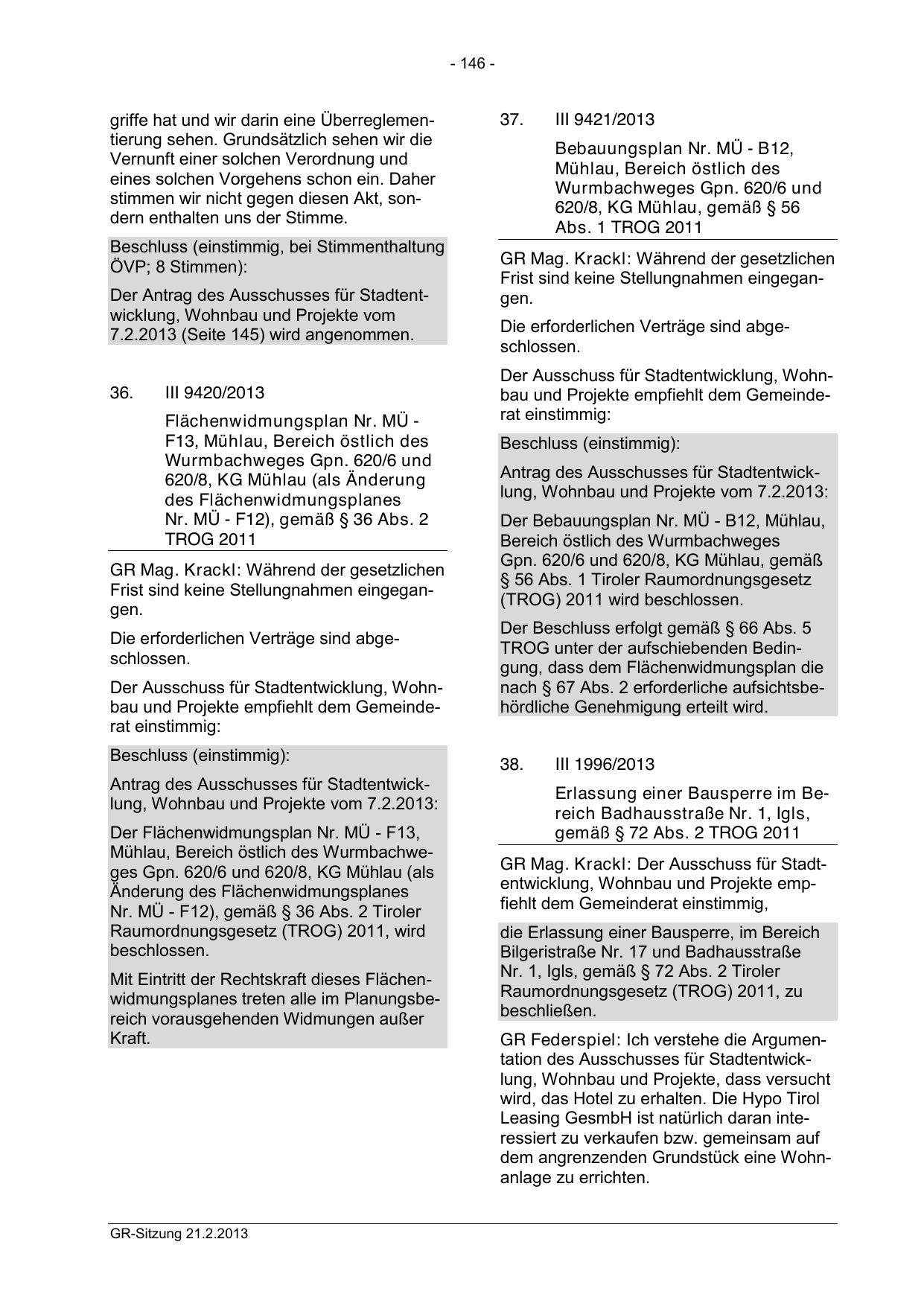 GR Mag. Krackl: Der Ausschuss für Stadtentwicklung, Wohnbau und Projekte empfiehlt dem Gemeinderat einstimmig,