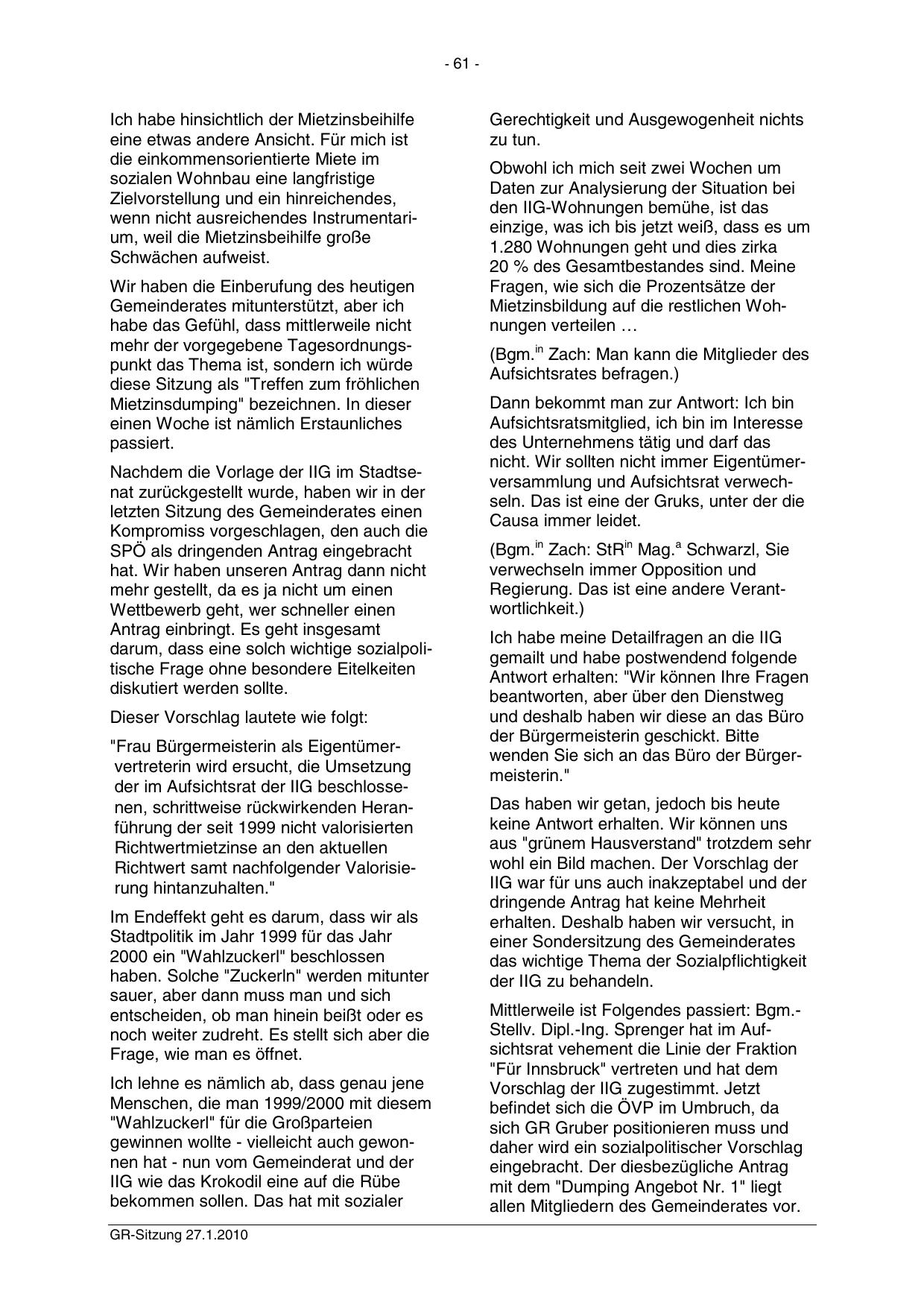 Nachdem die Vorlage der IIG im Stadtsenat zurückgestellt wurde, haben wir in der