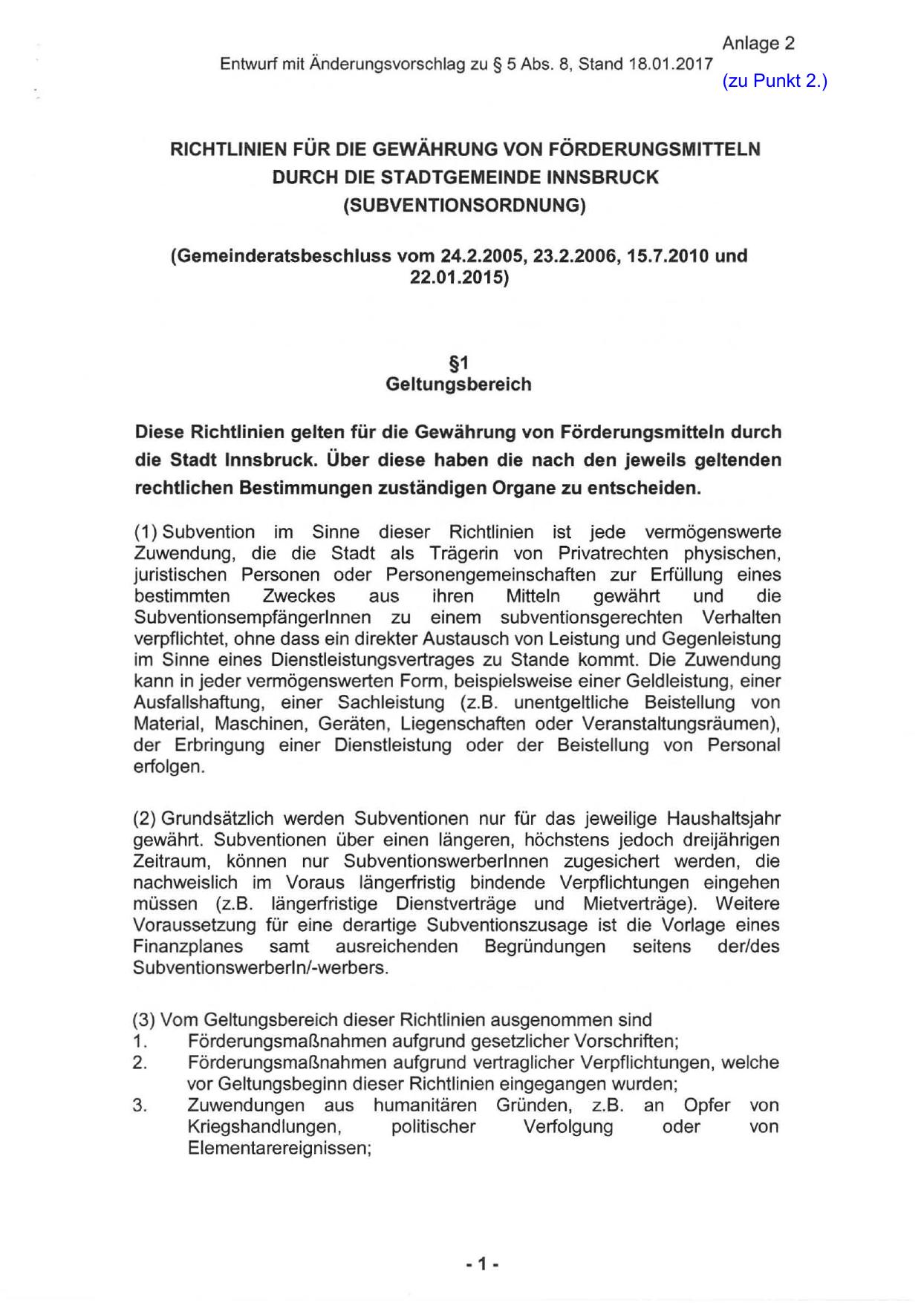 (Gemeinderatsbeschluss vom 24.2.2005, 23.2.2006, 15.7.2010 und