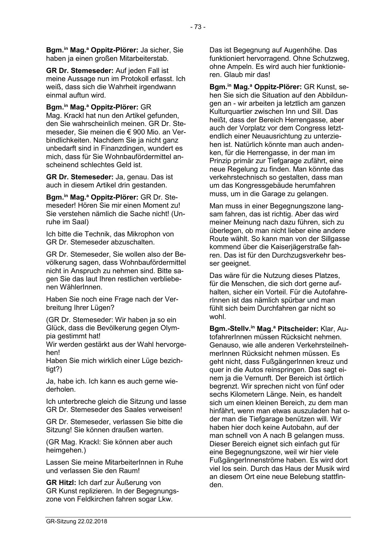 Bgm.in Mag.a Oppitz-Plörer: GR Dr. Stemeseder! Hören Sie mir einen Moment zu!