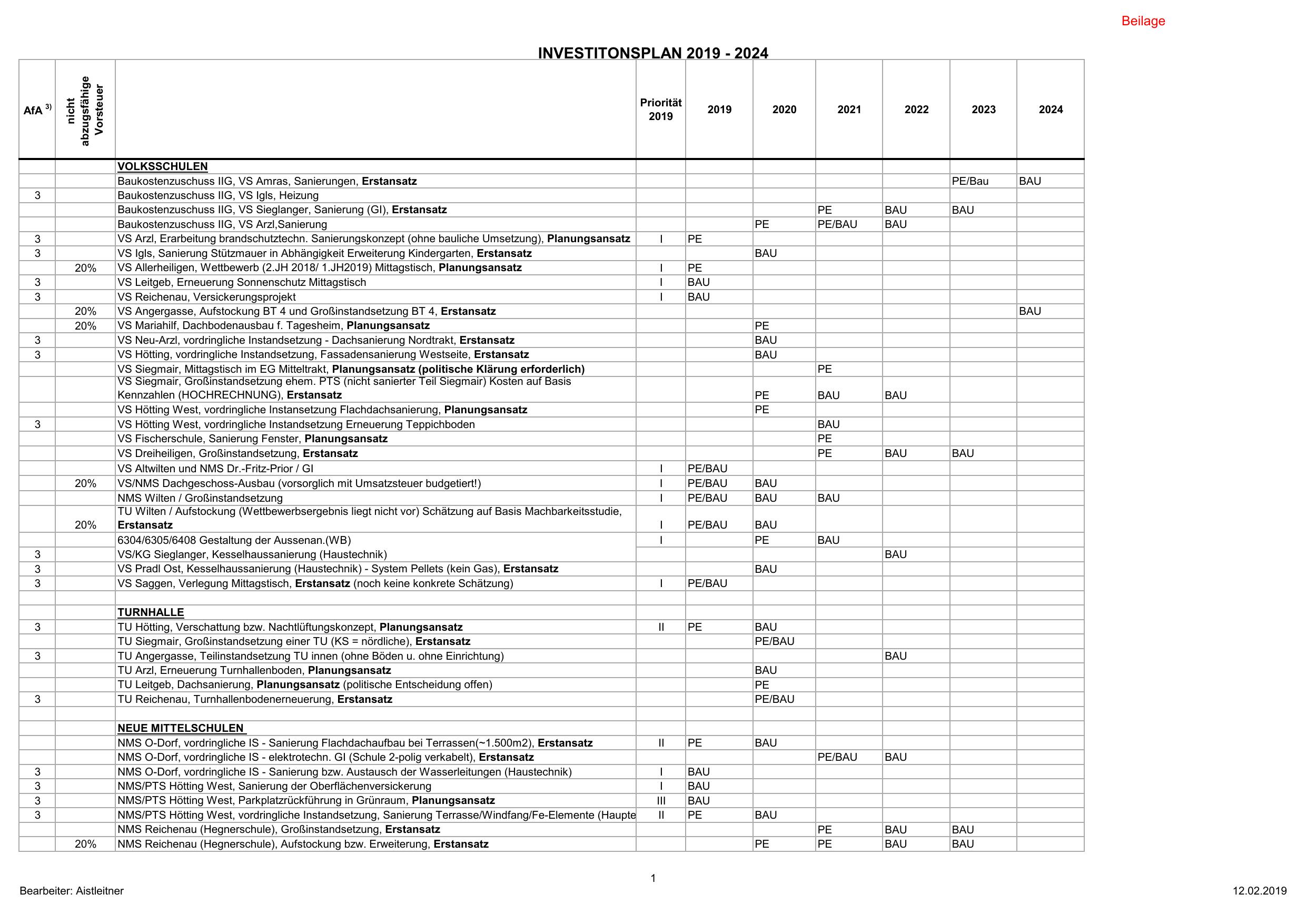 INVESTITONSPLAN 2019 - 2024