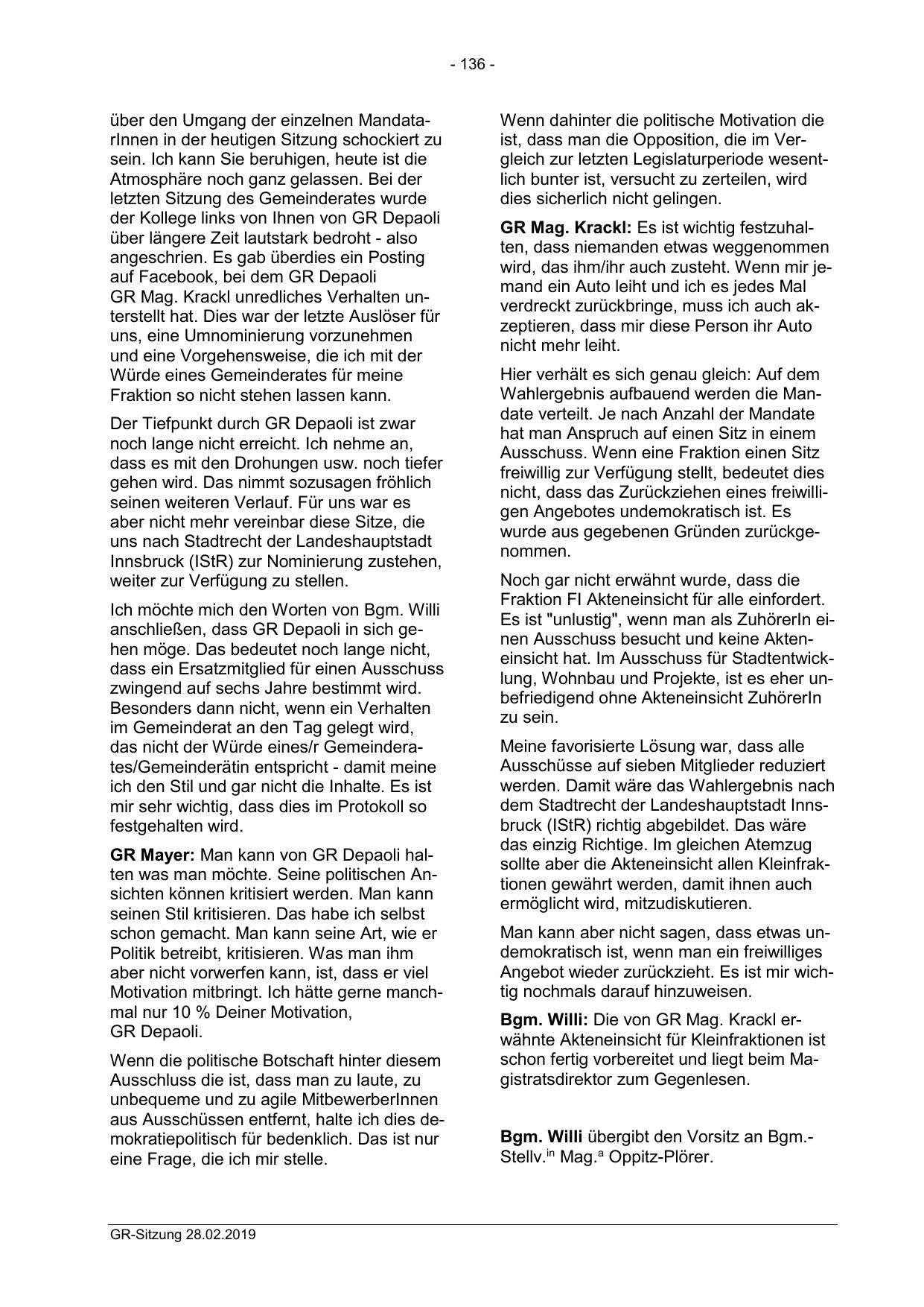 anschließen, dass GR Depaoli in sich gehen möge. Das bedeutet noch lange nicht,