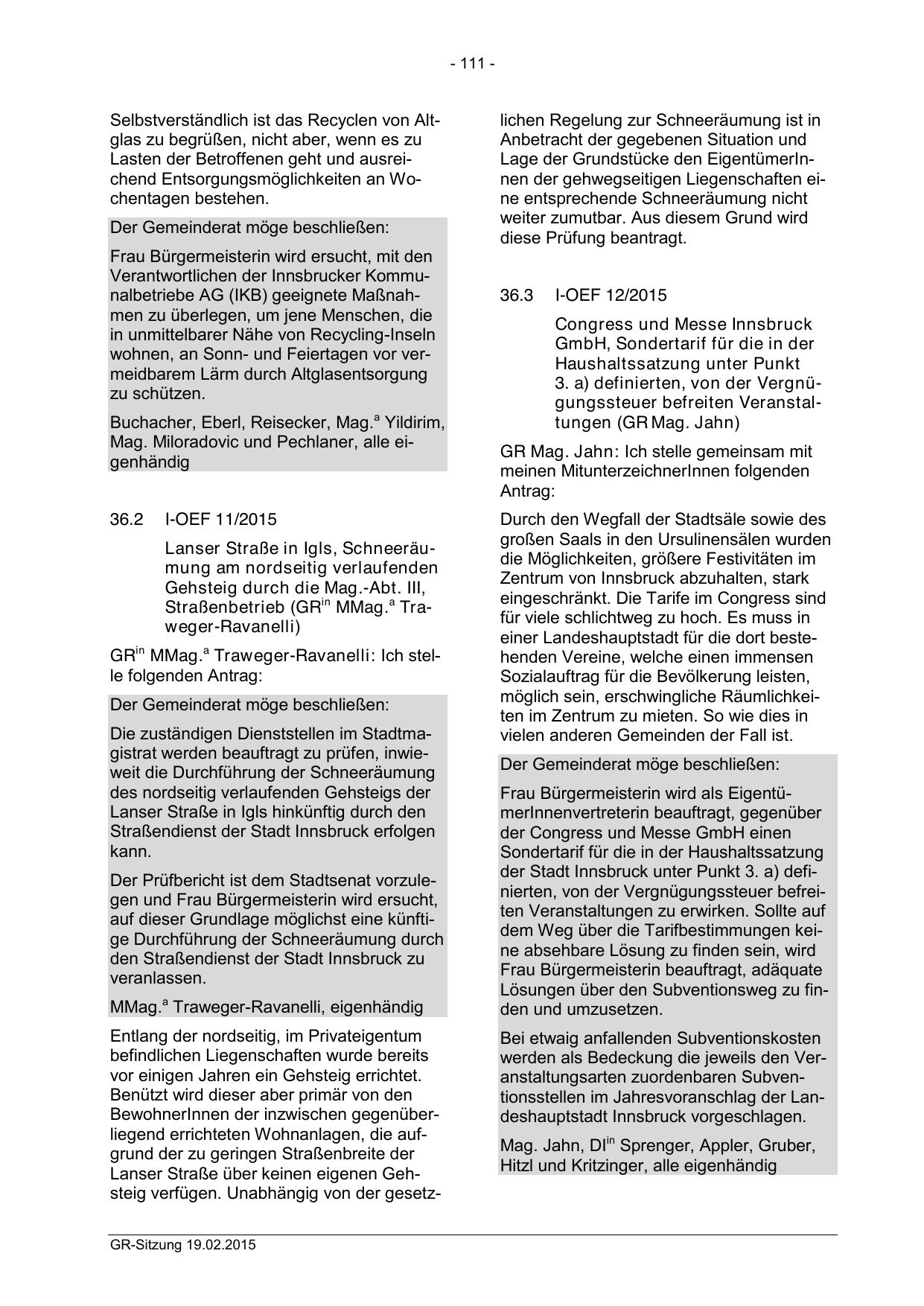 Lanser Straße über keinen eigenen Gehsteig verfügen. Unabhängig von der gesetzGR-Sitzung 19.02.2015