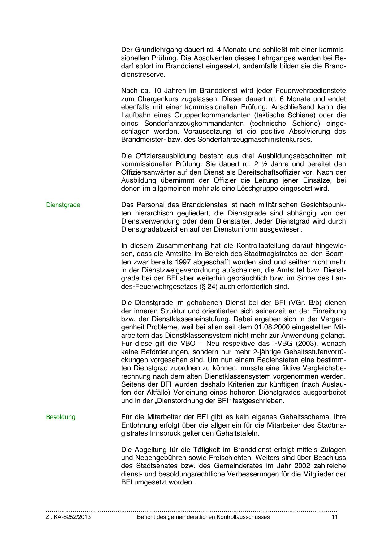 in der Dienstzweigeverordnung aufscheinen, die Amtstitel bzw. Dienstgrade bei der BFI aber weiterhin gebräuchlich bzw. im Sinne des Landes-Feuerwehrgesetzes (§ 24) auch erforderlich sind.