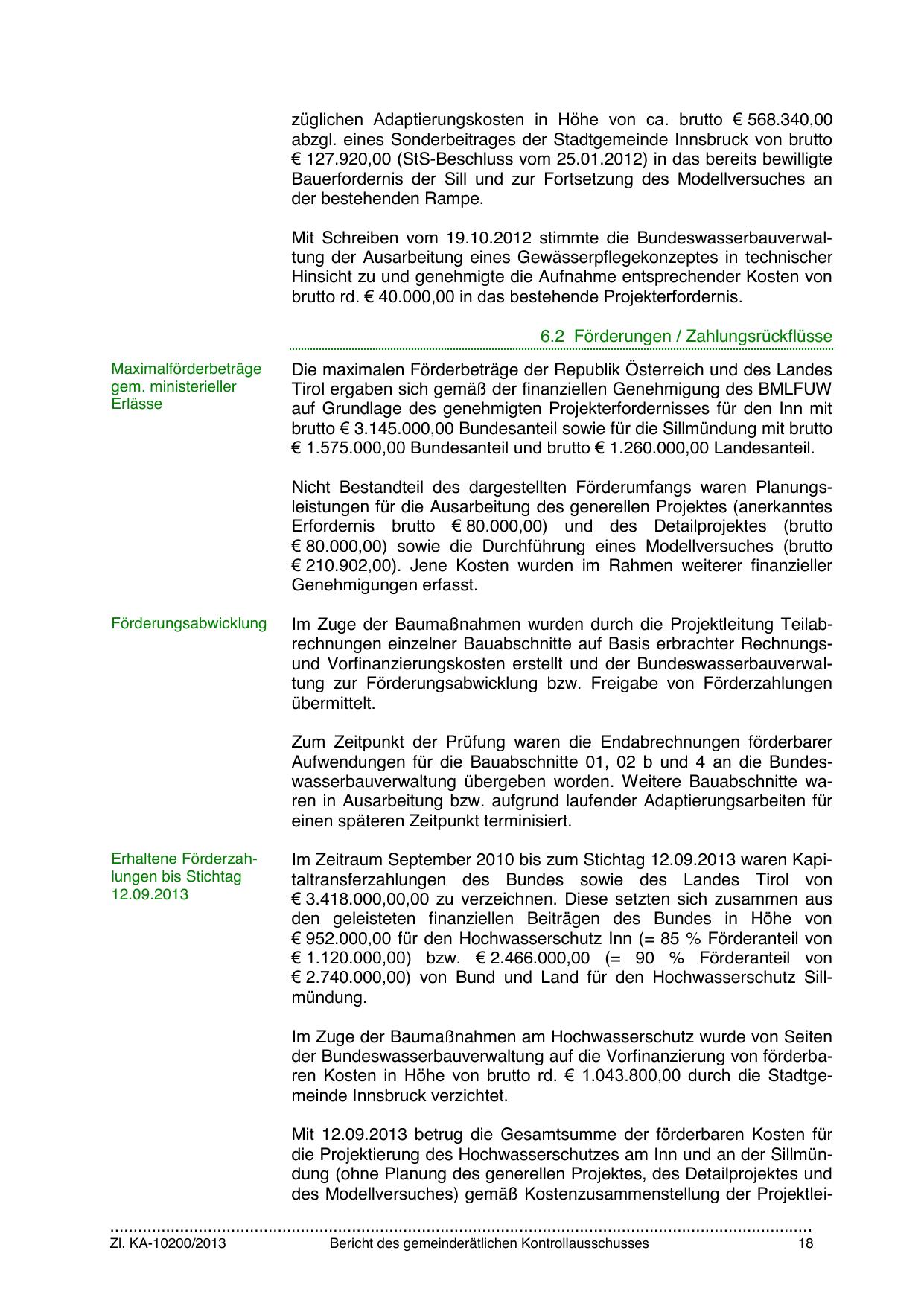 Im Zeitraum September 2010 bis zum Stichtag 12.09.2013 waren Kapitaltransferzahlungen des Bundes sowie des Landes Tirol von