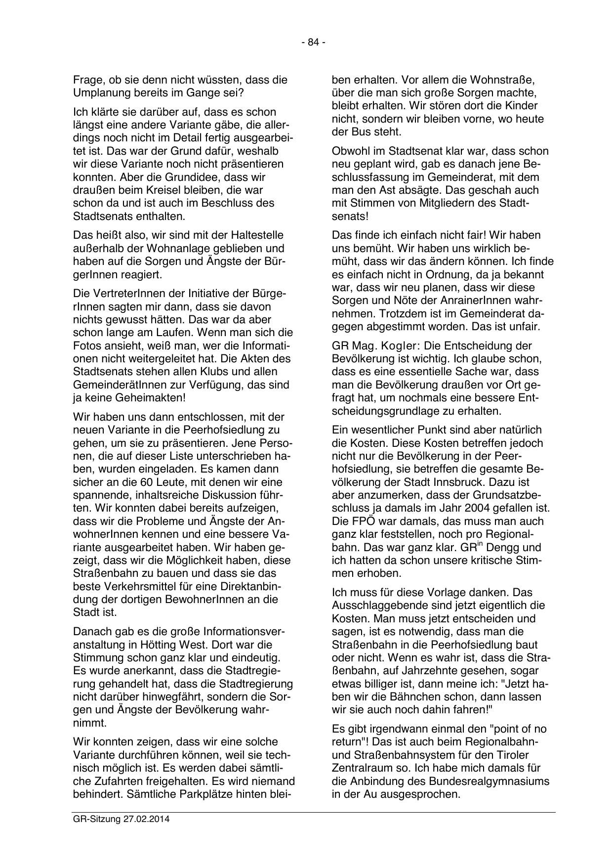 nicht nur die Bevölkerung in der Peerhofsiedlung, sie betreffen die gesamte Bevölkerung der Stadt Innsbruck. Dazu ist