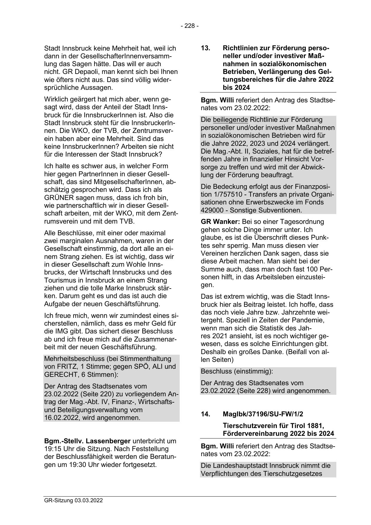 23.02.2022 (Seite 220) zu vorliegendem Antrag der Mag.-Abt. IV, Finanz-, Wirtschaftsund Beteiligungsverwaltung vom