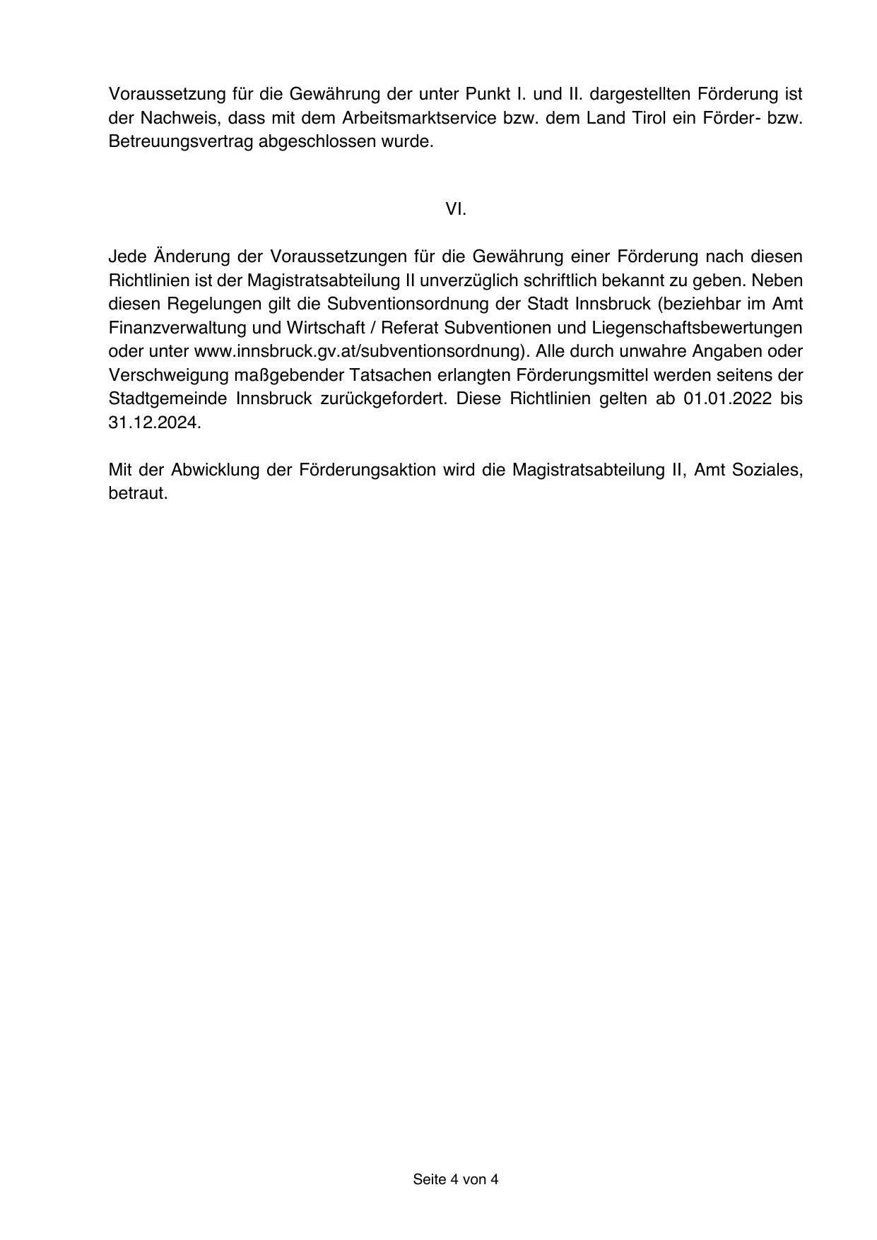 Stadtgemeinde Innsbruck zurückgefordert. Diese Richtlinien gelten ab 01.01.2022 bis