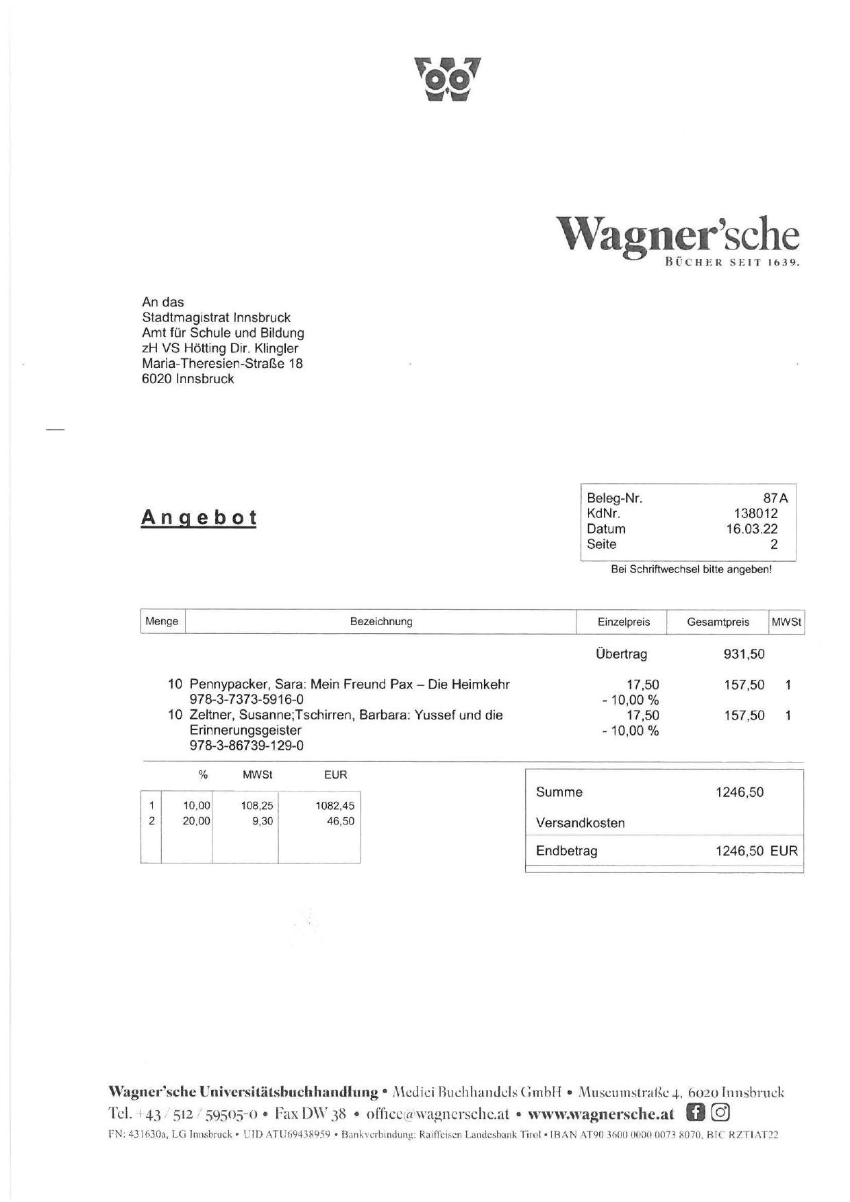 Tel. ➔ 43 , 512 , 59505-0 • Fax OY 38 • ofiicc([! wagncrschc.at • www.wagnerschc.at
