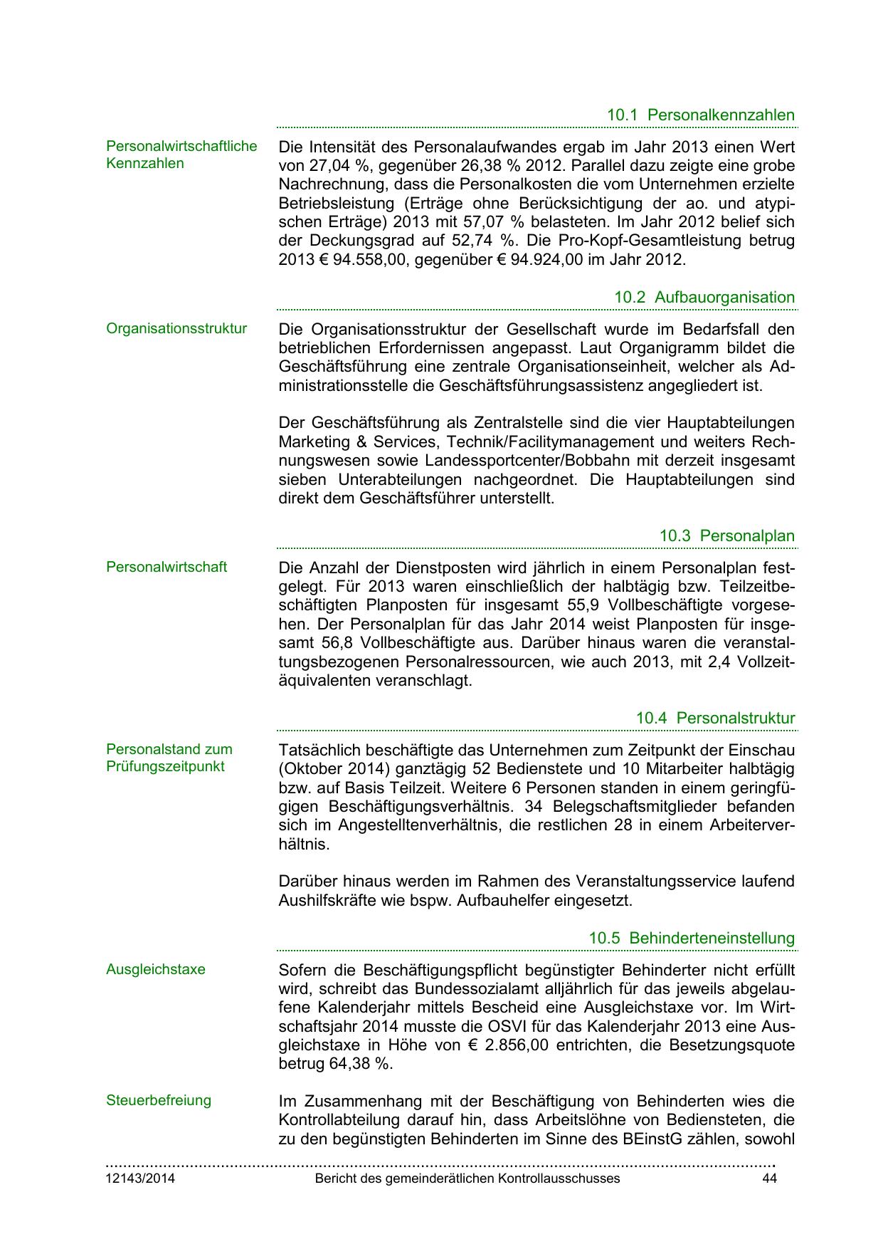 Betriebsleistung (Erträge ohne Berücksichtigung der ao. und atypischen Erträge) 2013 mit 57,07 % belasteten. Im Jahr 2012 belief sich