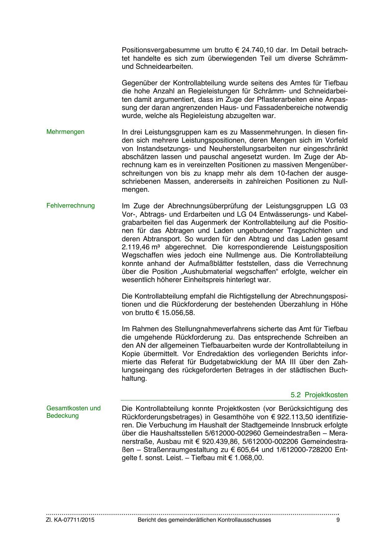Rückforderungsbetrages) in Gesamthöhe von € 922.113,50 identifizieren. Die Verbuchung im Haushalt der Stadtgemeinde Innsbruck erfolgte