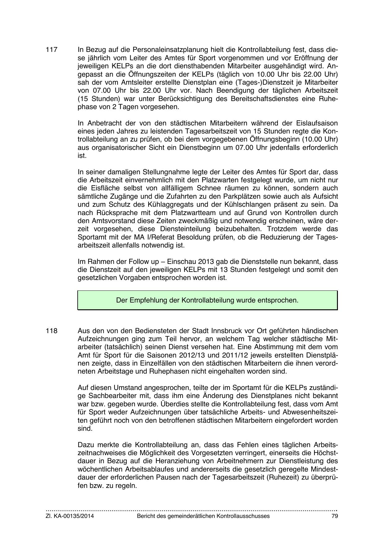 Amt für Sport für die Saisonen 2012/13 und 2011/12 jeweils erstellten Dienstplänen zeigte, dass in Einzelfällen von den städtischen Mitarbeitern die ihnen verordneten Arbeitstage und Ruhephasen nicht eingehalten worden sind.