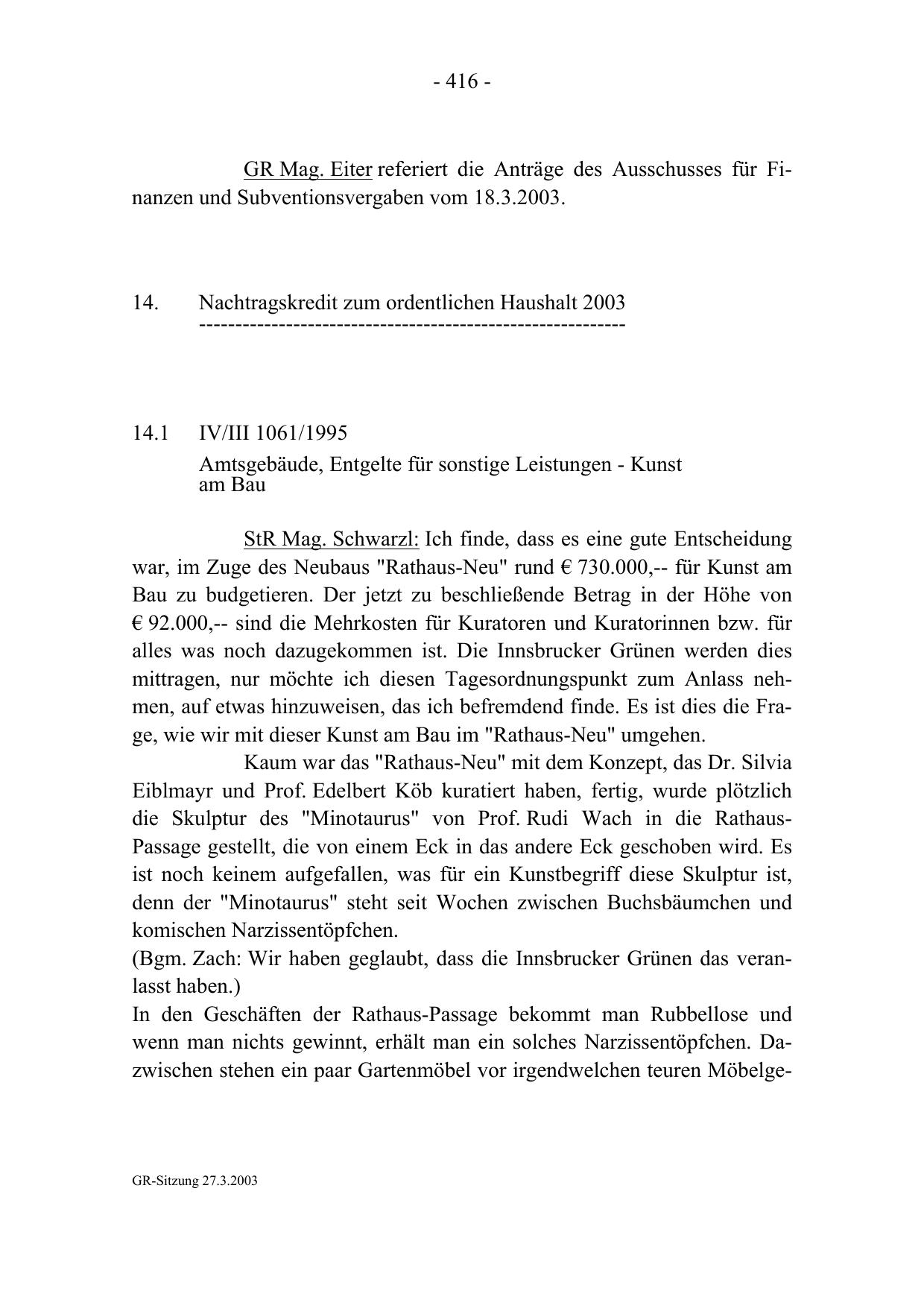 GR Mag. Eiter referiert die Anträge des Ausschusses für Finanzen und Subventionsvergaben vom 18.3.2003.