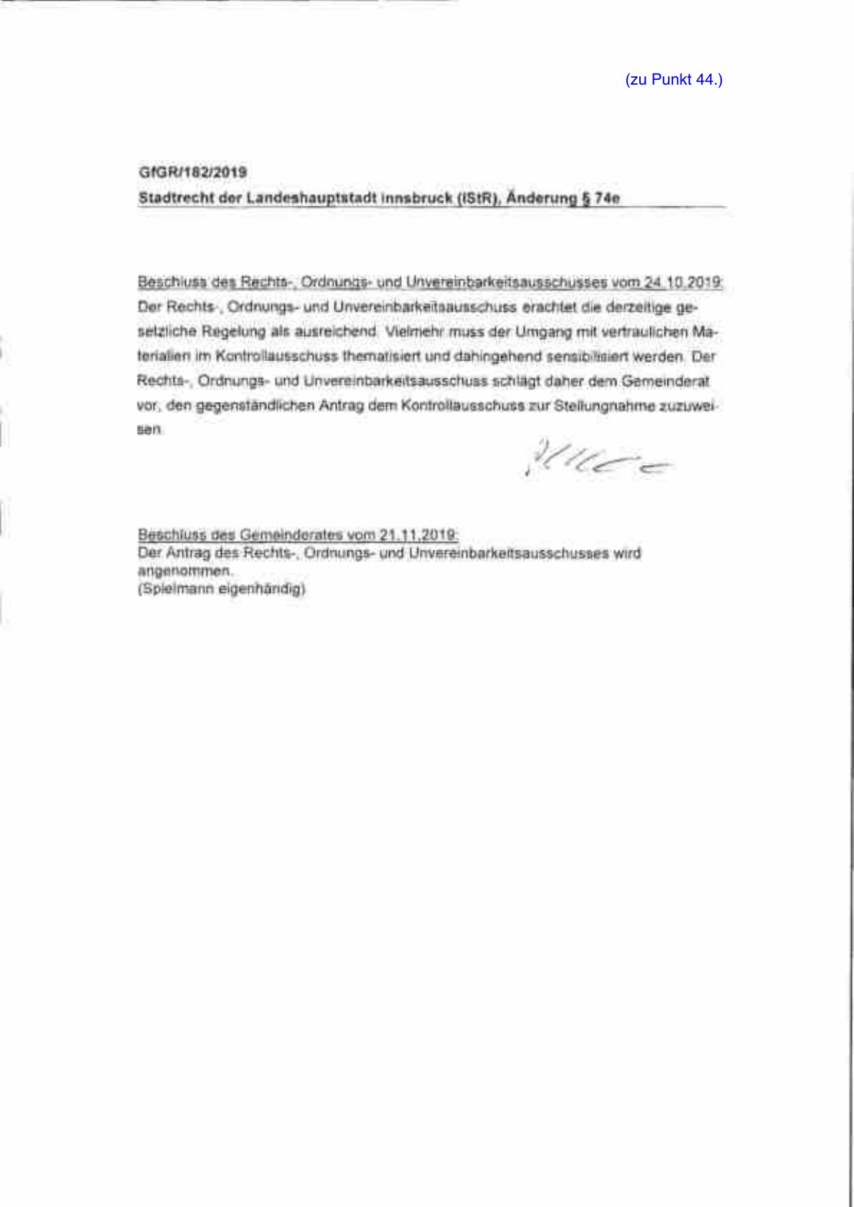 Stadtrecht der Landeshauptstadt Innsbruck (IStR ), Ä nderung § 74e