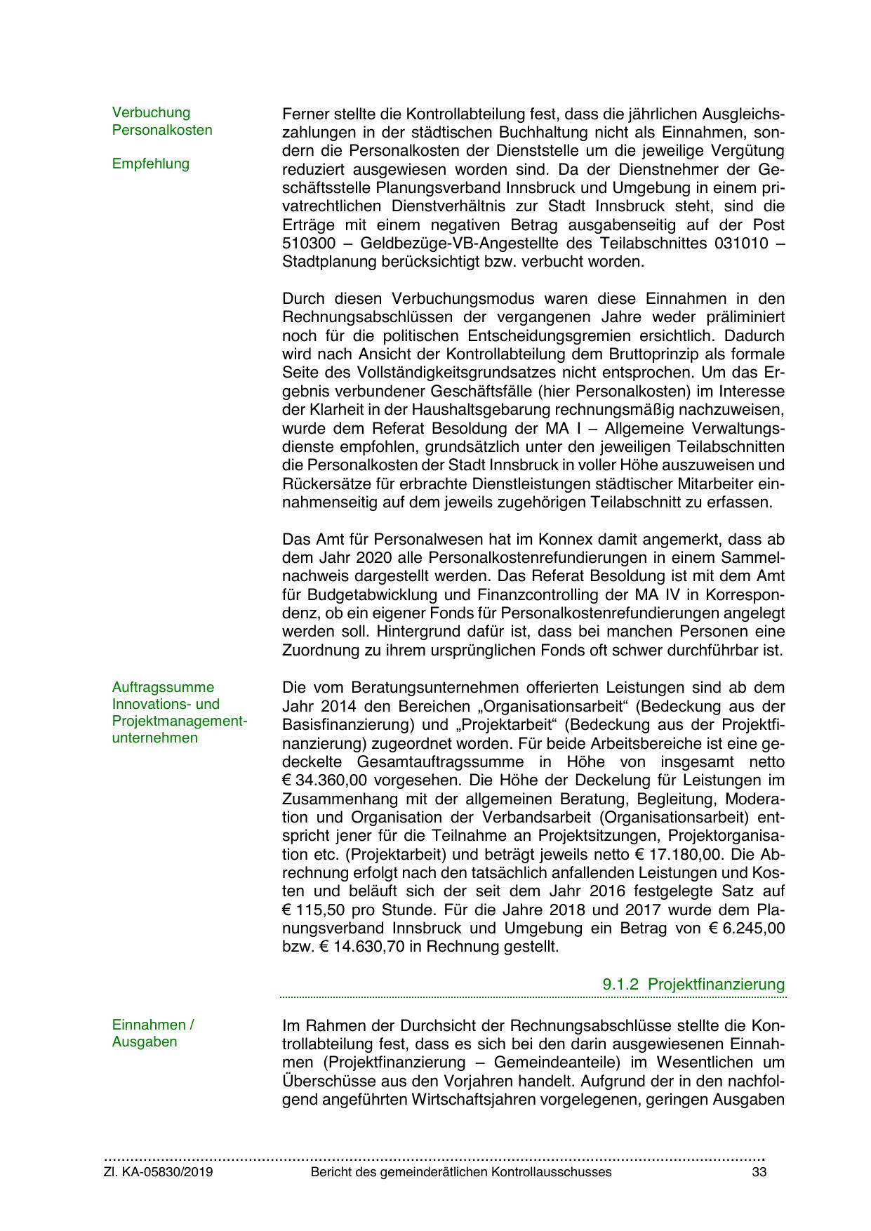 die Personalkosten der Stadt Innsbruck in voller Höhe auszuweisen und