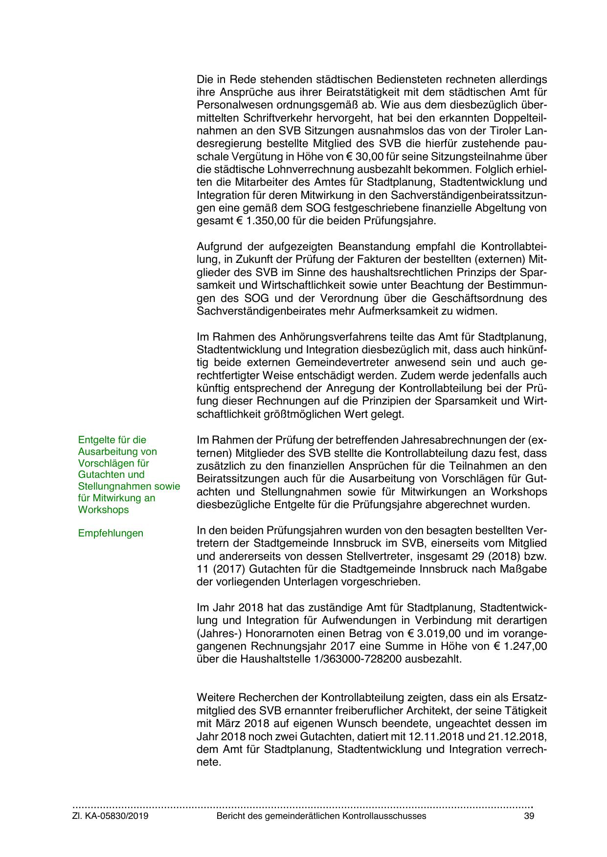 In den beiden Prüfungsjahren wurden von den besagten bestellten Vertretern der Stadtgemeinde Innsbruck im SVB, einerseits vom Mitglied