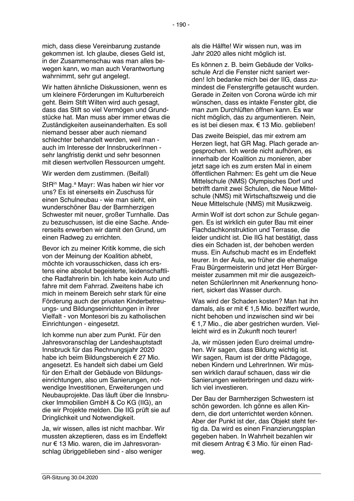 schlechter behandelt werden, weil man auch im Interesse der InnsbruckerInnen sehr langfristig denkt und sehr besonnen