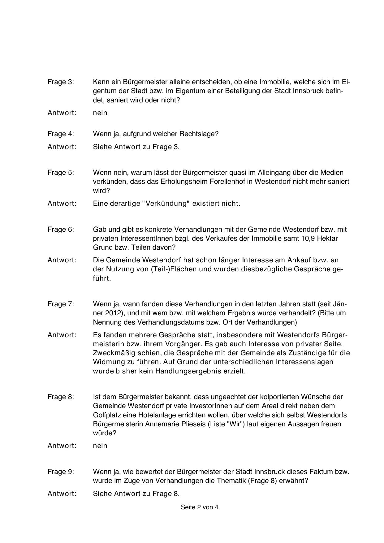 Gab und gibt es konkrete Verhandlungen mit der Gemeinde Westendorf bzw. mit