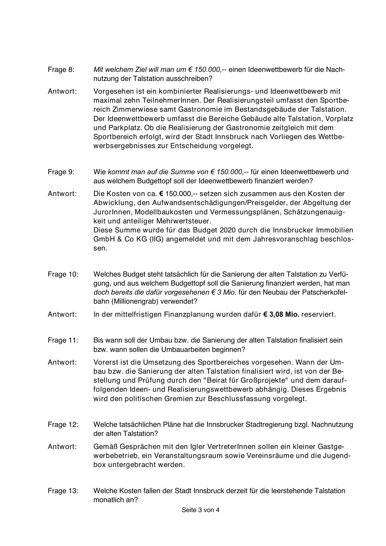 Welche Kosten fallen der Stadt Innsbruck derzeit für die leerstehende Talstation