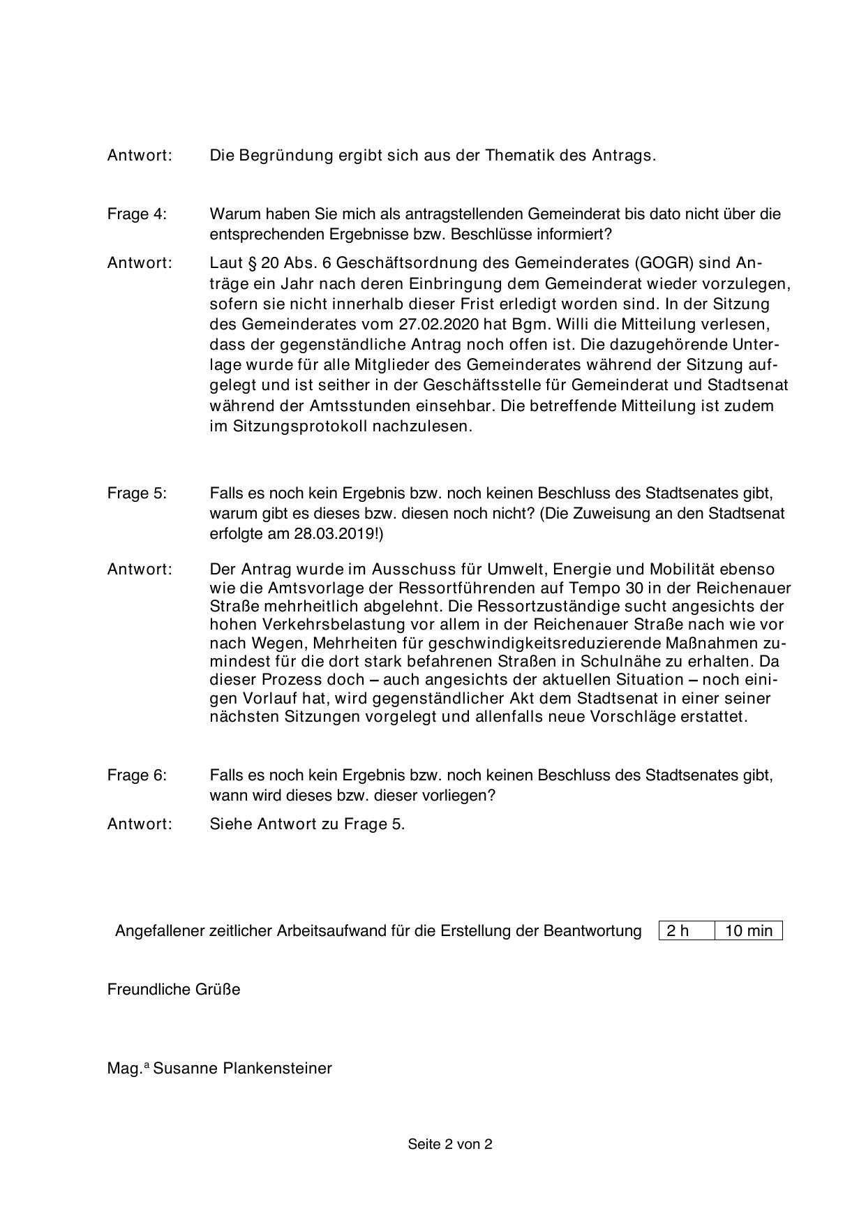 wie die Amtsvorlage der Ressortführenden auf Tempo 30 in der Reichenauer