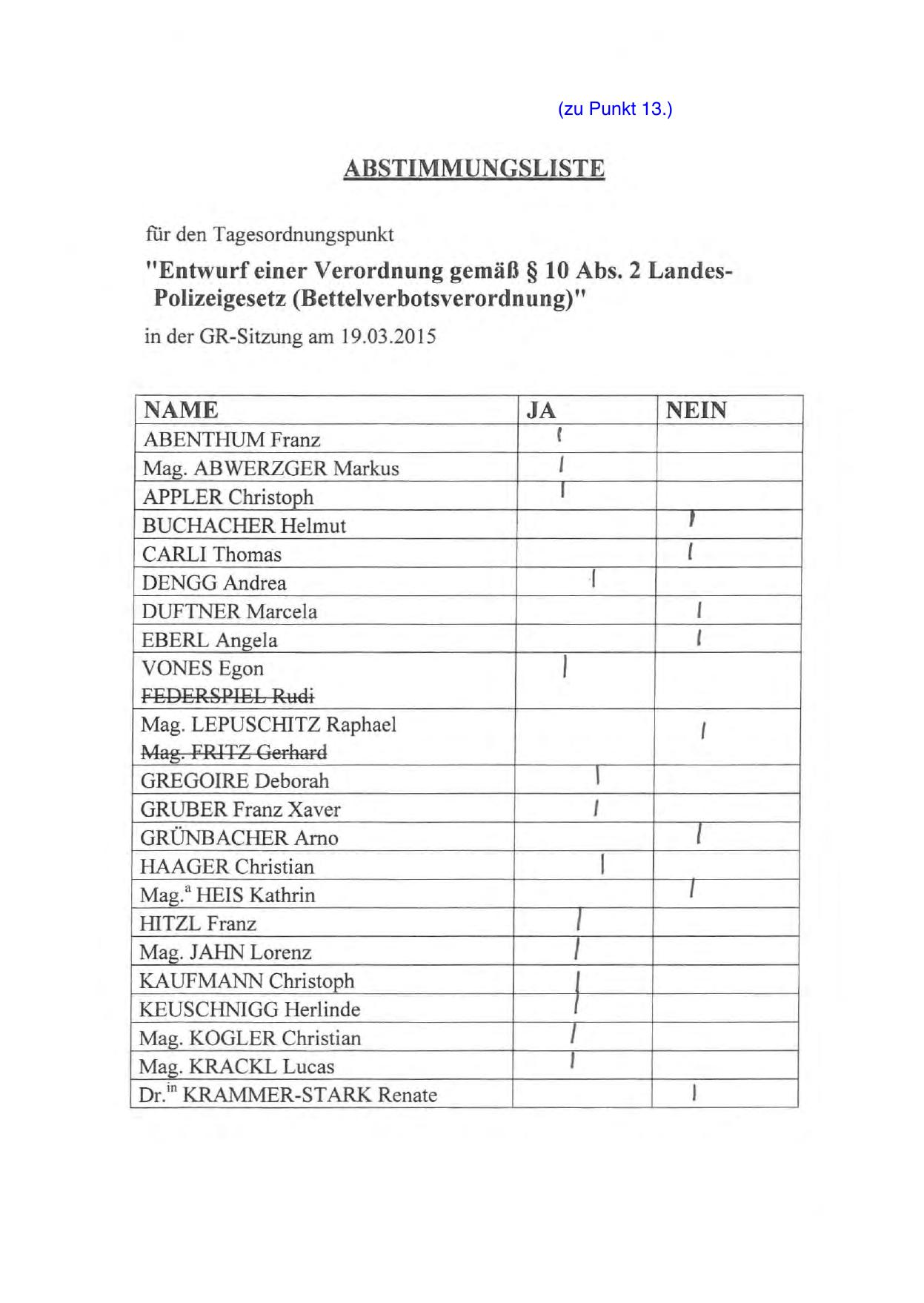 "Entwurf einer Verordnung gemäß § 10 Abs. 2 LandesPolizeigesetz (Bettelverbotsverordnung) "