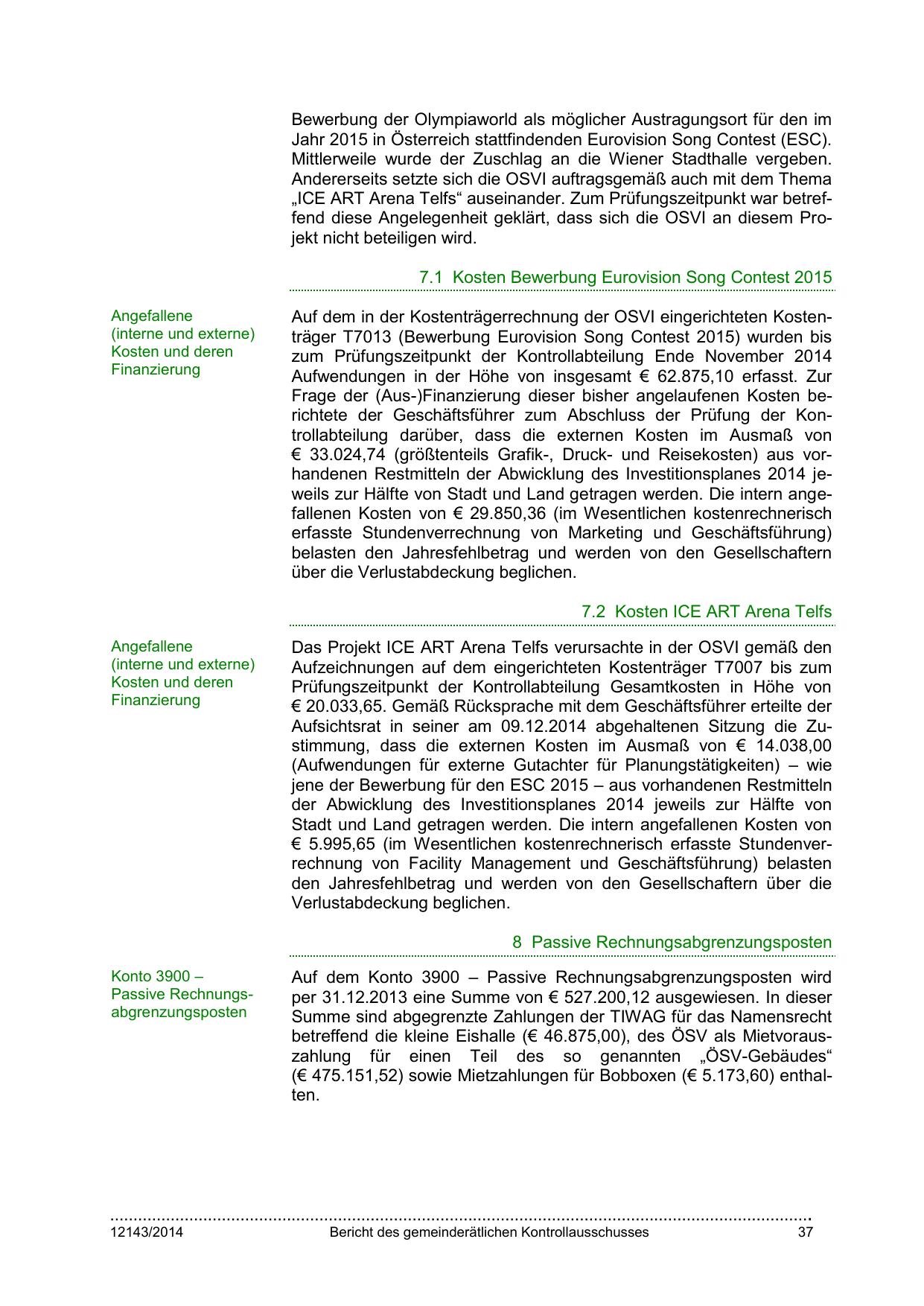 Frage der (Aus-)Finanzierung dieser bisher angelaufenen Kosten berichtete der Geschäftsführer zum Abschluss der Prüfung der Kontrollabteilung darüber, dass die externen Kosten im Ausmaß von