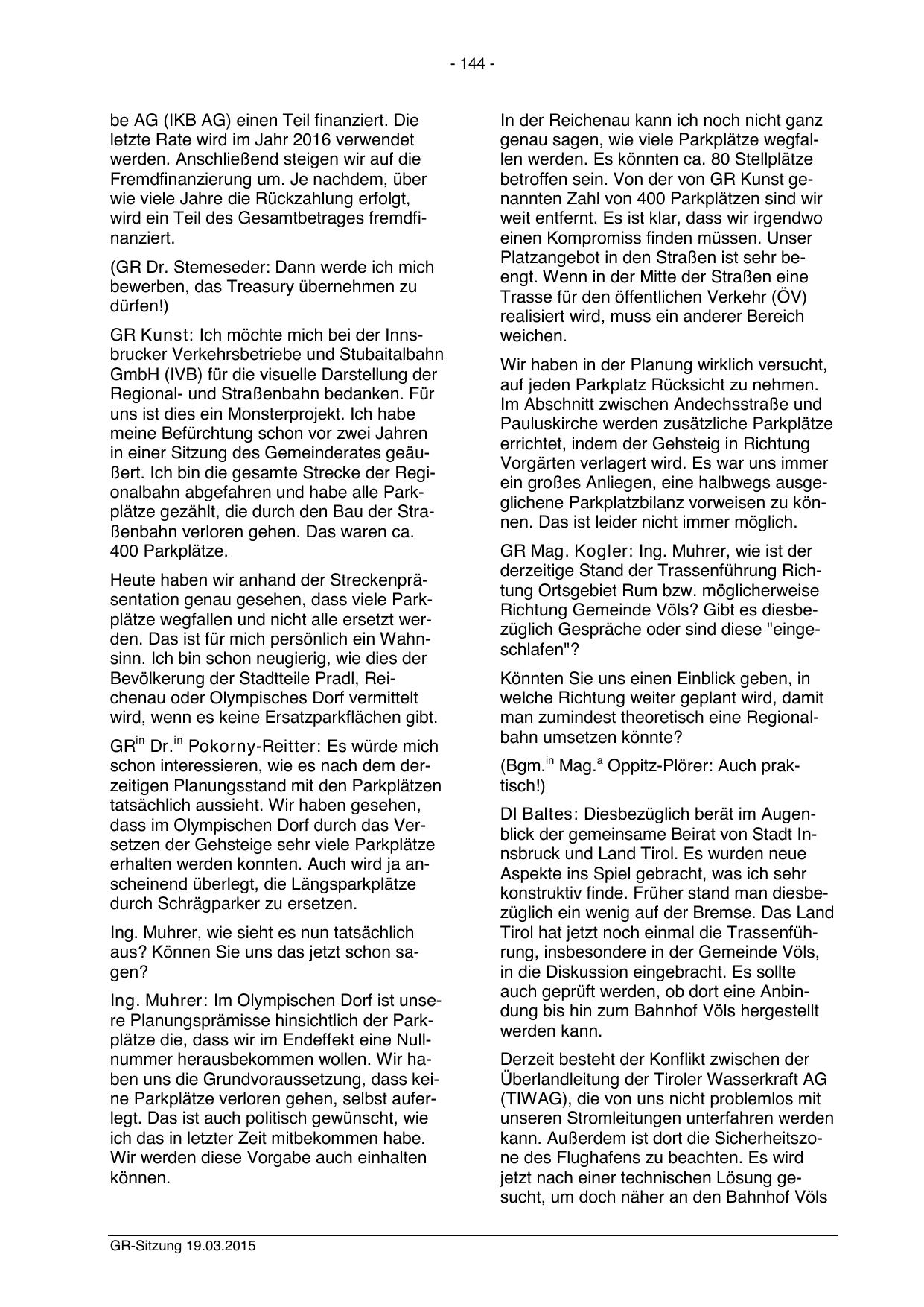 DI Baltes: Diesbezüglich berät im Augenblick der gemeinsame Beirat von Stadt Innsbruck und Land Tirol. Es wurden neue