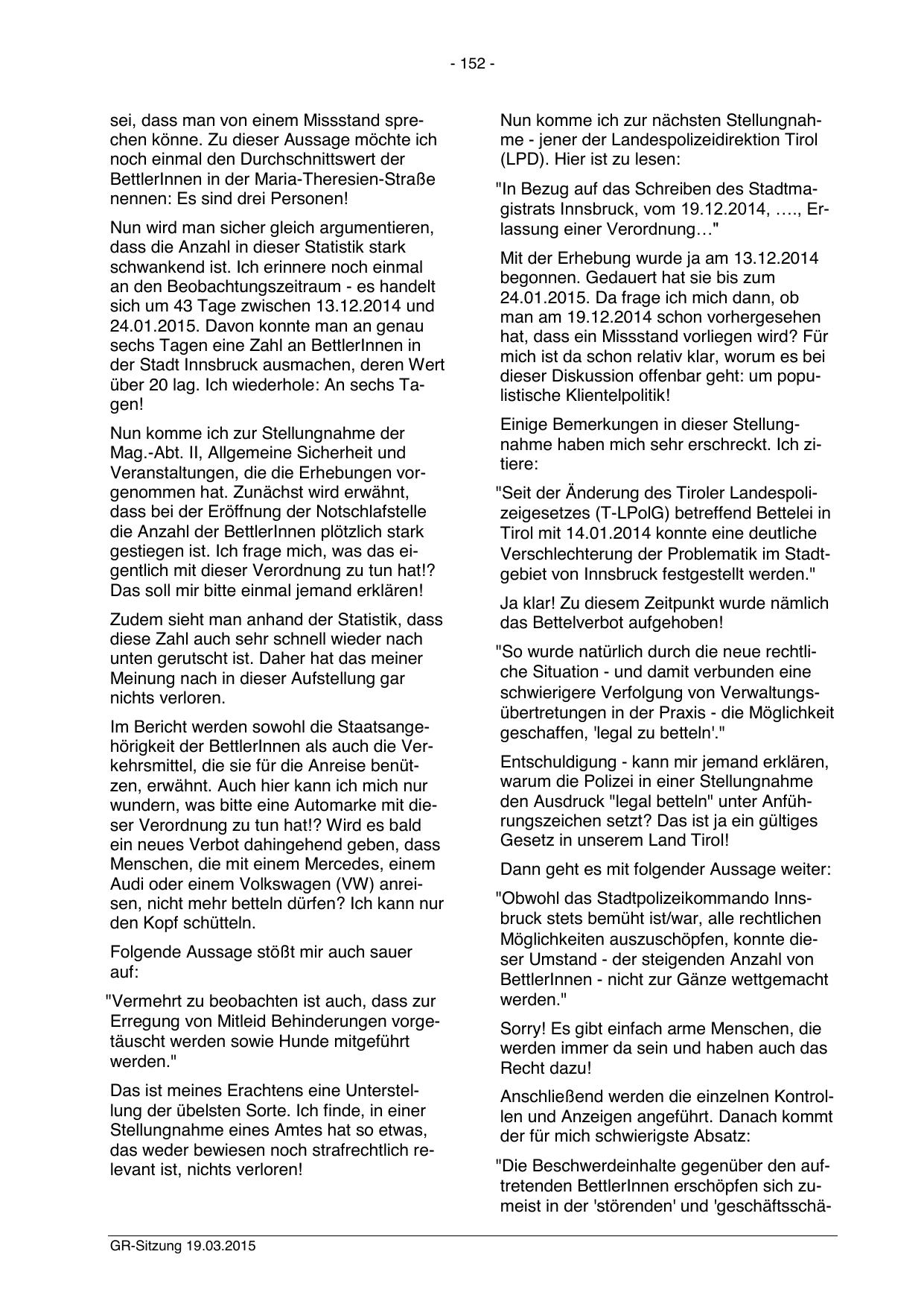 "Seit der Änderung des Tiroler Landespolizeigesetzes (T-LPolG) betreffend Bettelei in