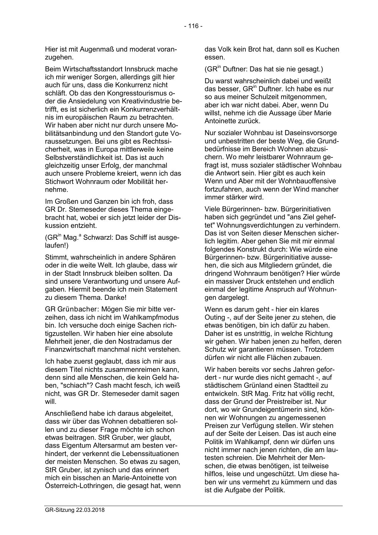 GR Grünbacher: Mögen Sie mir bitte verzeihen, dass ich nicht im Wahlkampfmodus
