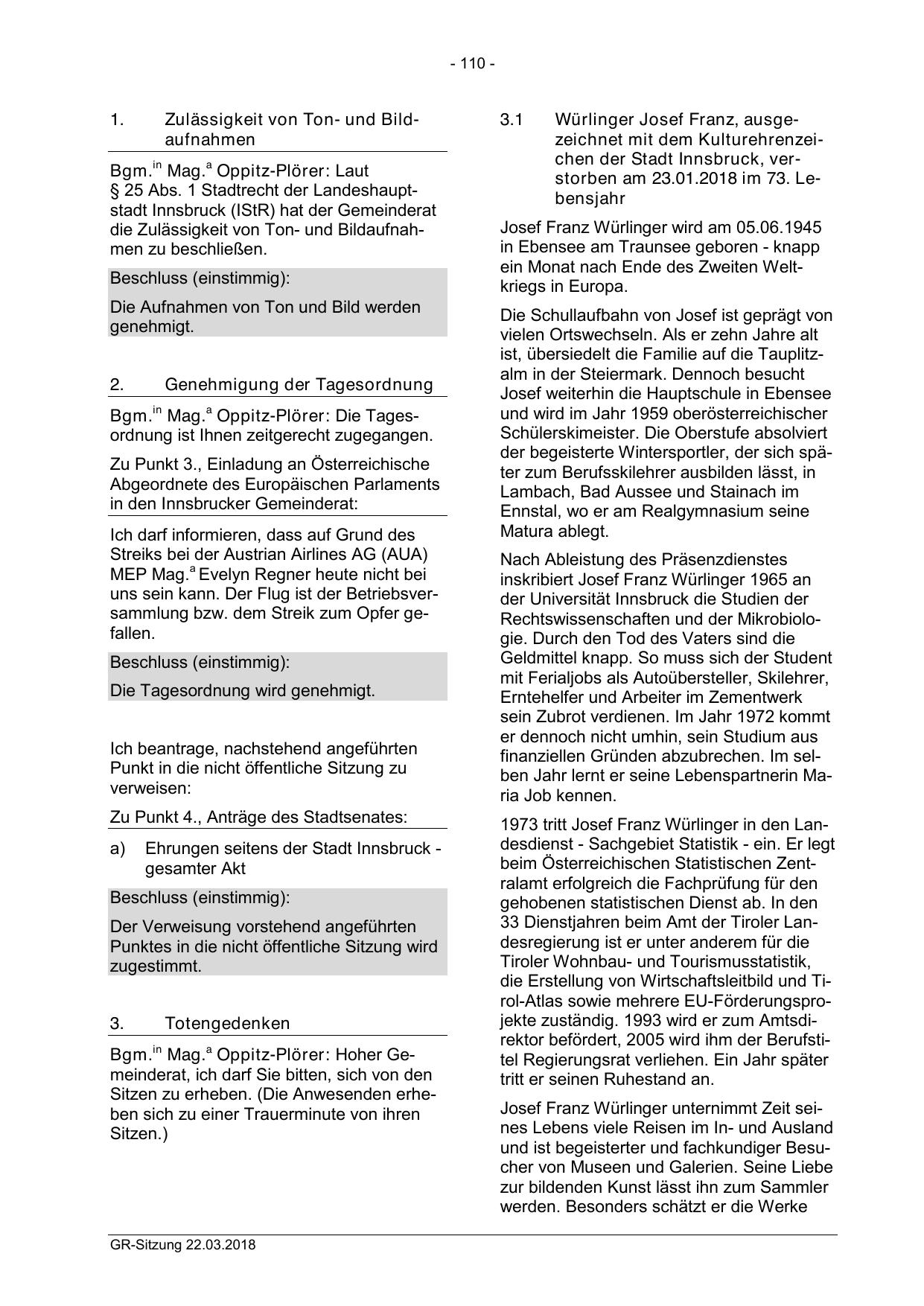 § 25 Abs. 1 Stadtrecht der Landeshauptstadt Innsbruck (IStR) hat der Gemeinderat