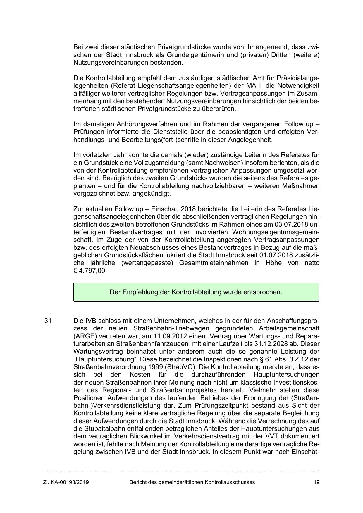 worden ist, fehlte nach Meinung der Kontrollabteilung eine derartige vertragliche Regelung zwischen IVB und der Stadt Innsbruck. In diesem Punkt war nach Einschät-