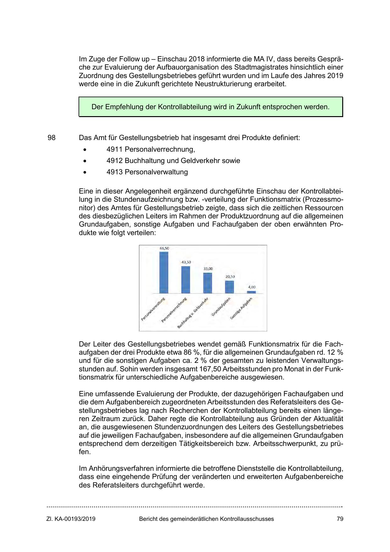 Eine in dieser Angelegenheit ergänzend durchgeführte Einschau der Kontrollabteilung in die Stundenaufzeichnung bzw. -verteilung der Funktionsmatrix (Prozessmonitor) des Amtes für Gestellungsbetrieb zeigte, dass sich die zeitlichen Ressourcen
