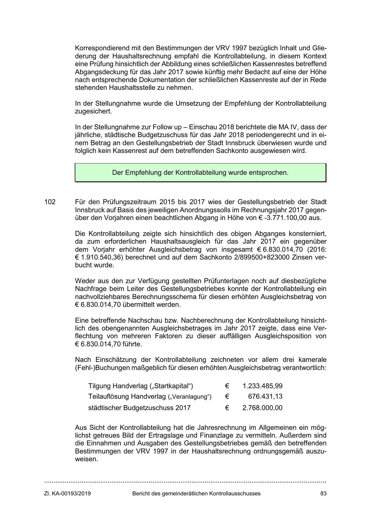 Innsbruck auf Basis des jeweiligen Anordnungssolls im Rechnungsjahr 2017 gegenüber den Vorjahren einen beachtlichen Abgang in Höhe von € -3.771.100,00 aus.