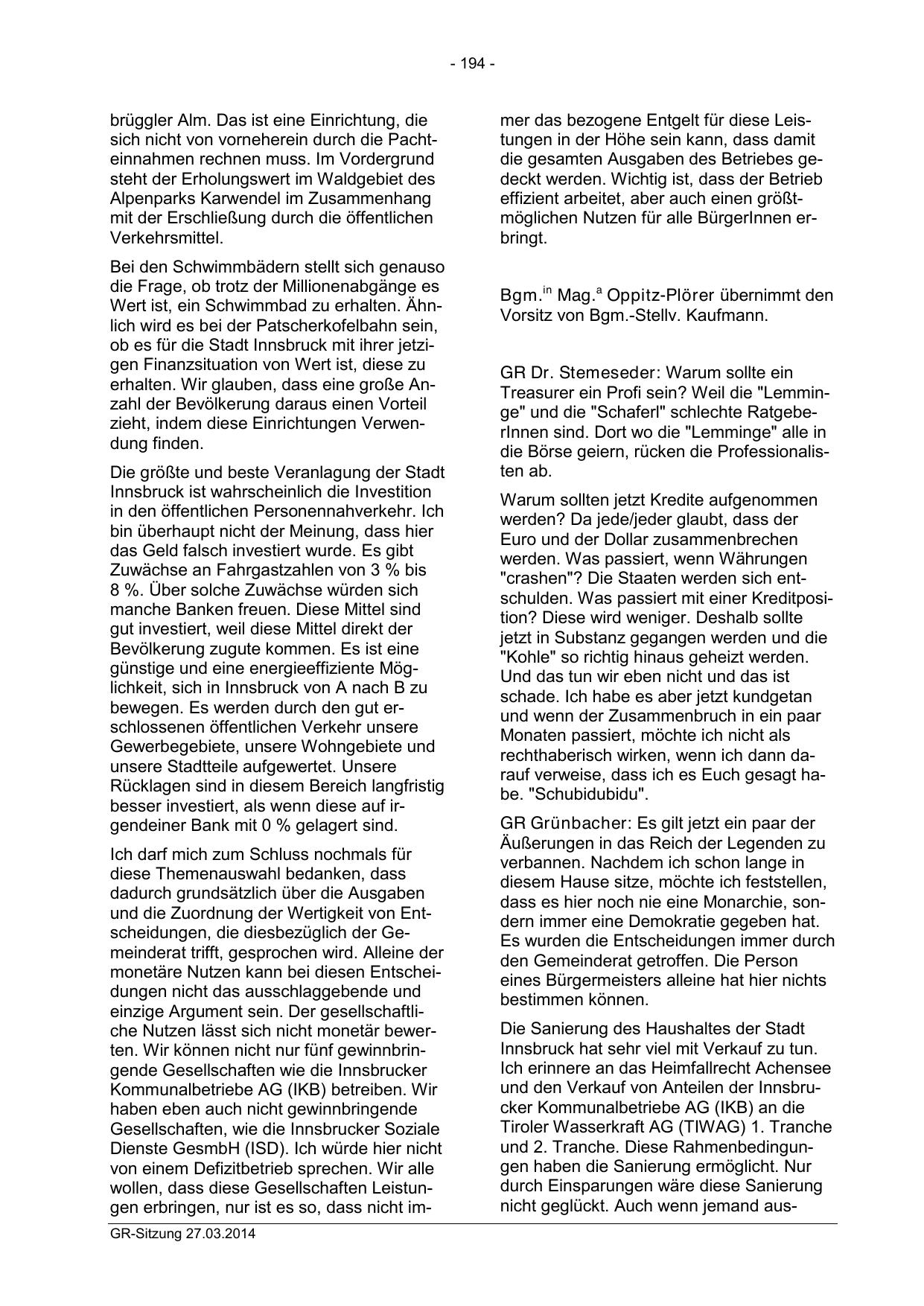 wollen, dass diese Gesellschaften Leistungen erbringen, nur ist es so, dass nicht imGR-Sitzung 27.03.2014