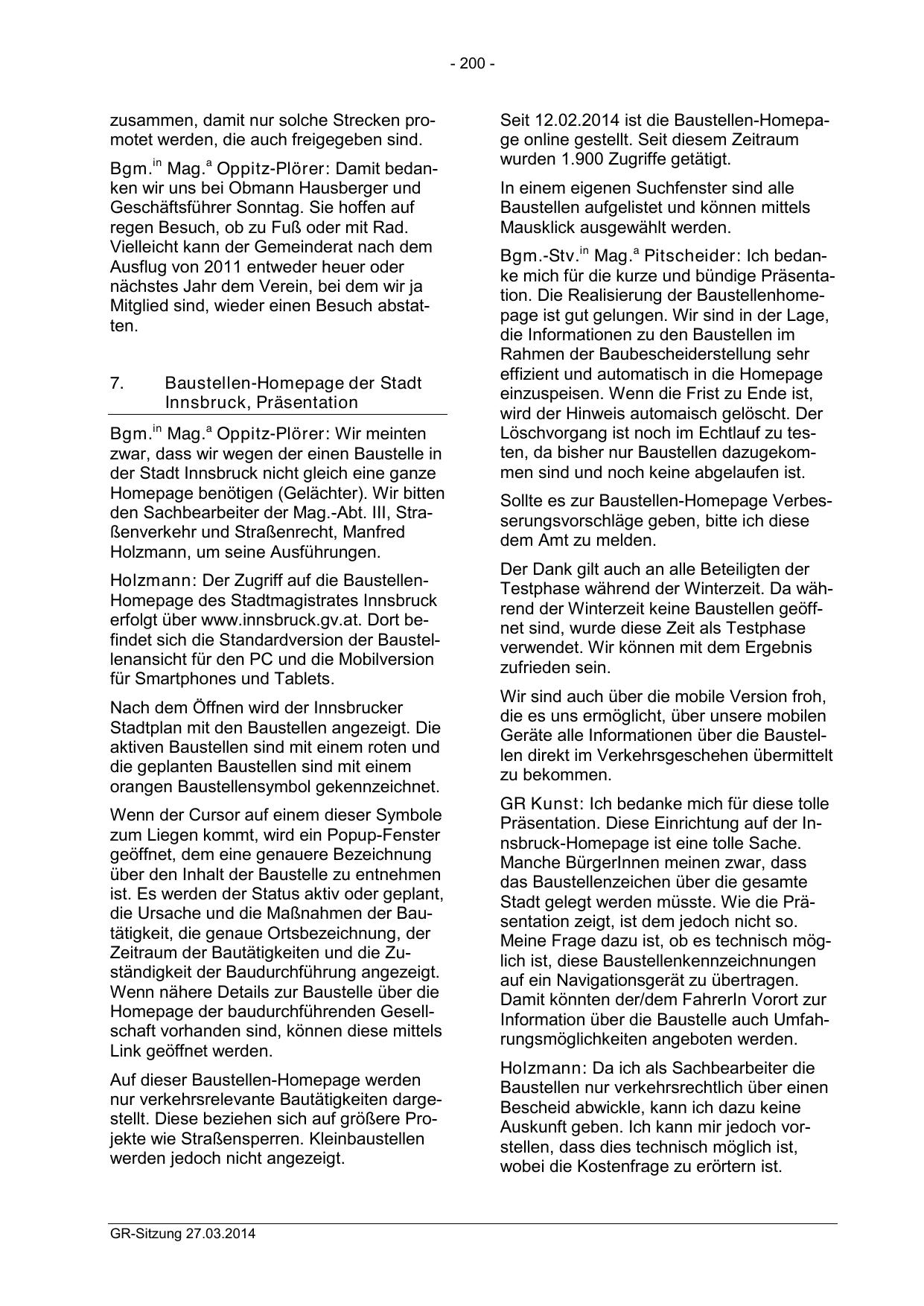 Bgm.-Stv.in Mag.a Pitscheider: Ich bedanke mich für die kurze und bündige Präsentation. Die Realisierung der Baustellenhomepage ist gut gelungen. Wir sind in der Lage,